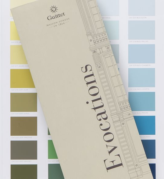 Fabricant français de peintures depuis 1864, GUITTET développe une offre de produits, destinés aux professionnels du bâtiment, alliant authenticité et décoration haut de gamme. Depuis plus de 50 ans, la qualité reconnue des laques GUITTET, a permis à la marque d’acquérir une forte notoriété et de devenir la référence sur le marché. Fort de ce savoir-faire, GUITTET propose aujourd’hui une multitude de finitions, de matières, d’aspects et de couleurs pour donner à toutes les décorations un esprit résolument moderne et tendance. GUITTET répond à tous les besoins décoratifs en intérieur comme en extérieur, en proposant des peintures pour les murs, les plafonds, la façade, le bois, le métal et le sol. Guittet s’engage pour la planète en proposant un grand nombre de peintures acryliques labellisées NF Environnement et Ecolabel aussi bien en aspect mat, satin ou velours.