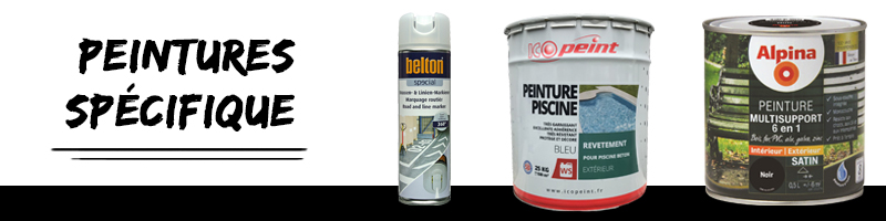 Les peintures spécifiques vont regrouper des peintures aux utilisations variées et souvent très spécifiques, mais aussi des peintures avec des utilisations très larges comme les peintures multisupports notamment.