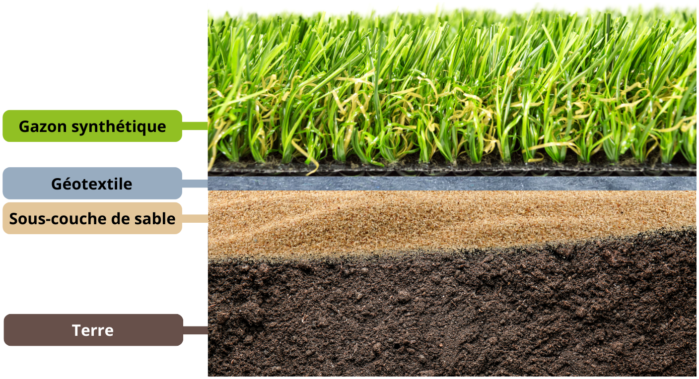 Le backing, ou sous-couche du gazon synthétique, joue un rôle crucial dans la durabilité et le drainage. Un backing renforcé en latex ou polyuréthane offre une meilleure stabilité, empêche les brins de se détacher et permet à l’eau de pluie de s’évacuer rapidement. Une sous-couche n'est pas inclus directement sur le gazon, un prix légèrement plus élevé, mais qui garantit que votre gazon reste esthétique et fonctionnel plusieurs années, même sous un usage intensif ou sur des surfaces exposées aux intempéries comme les balcons et terrasses. Choisir un bon backing comme le rouleau géotextile pour gazon synthétique réduit également le risque de déformations et facilite l’entretien au quotidien.
