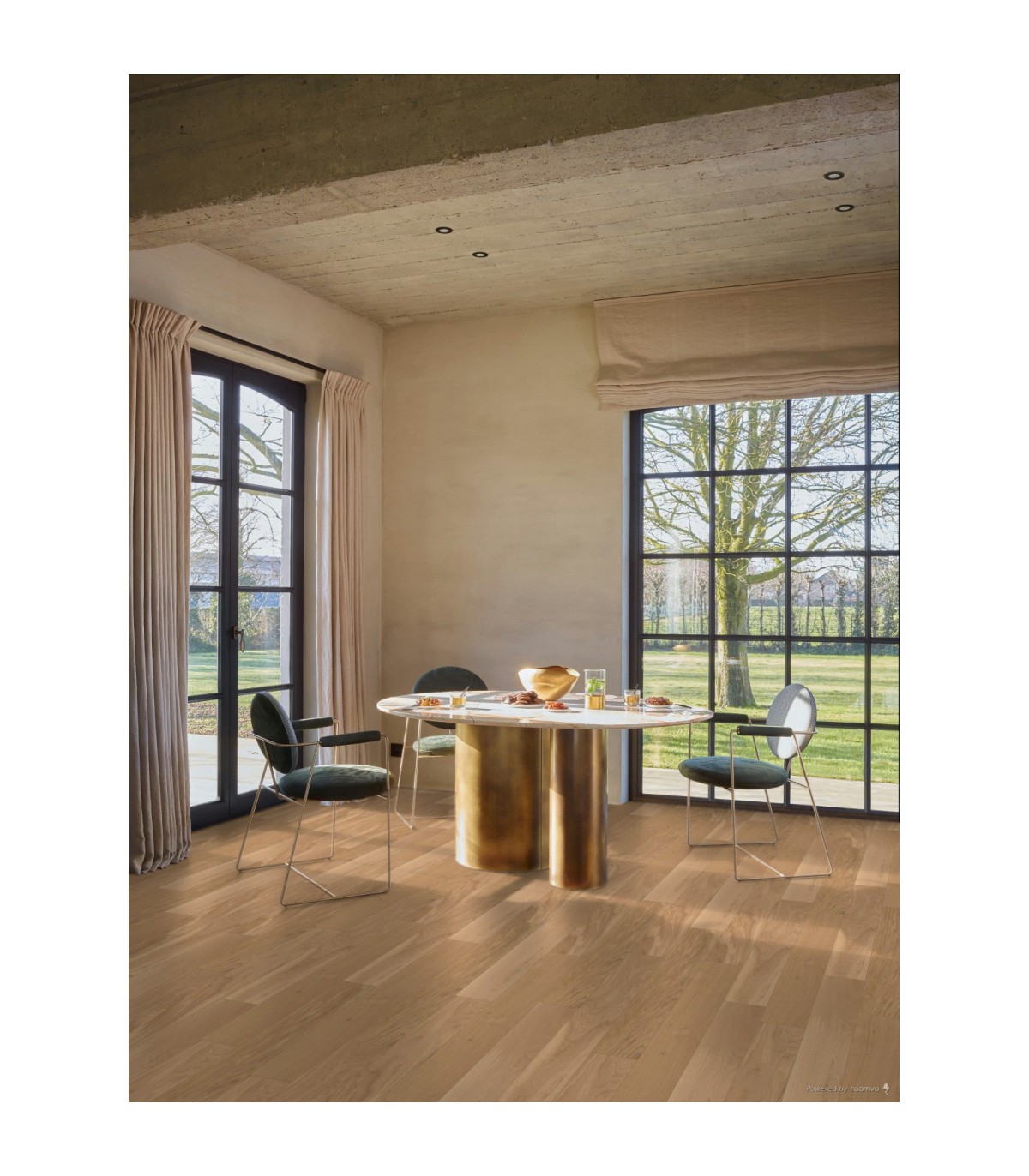 En plus de protéger votre sol durablement, ce vernis confère à ce parquet un aspect extra mat naturel des plus élégants. Grâce à cette technologie, vous serez dispensé de l'application annuelle d'une huile de protection et votre sol sera également plus facile à nettoyer.
