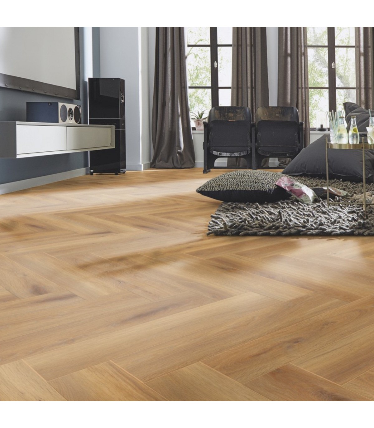 Grâce à cette particularité, le parquet Herringbone sera adapté à des pièces de vie comme une cuisine ou une salle à manger. Le coloris Pisa Oak est très apprécié car il permet de donner du caractère et de l’authenticité à la pièce concernée. Les tons bruns du Pisa Oak permettent de retrouver un aspect un peu plus rustique et proche du bois naturel que les parquets aux tons blancs.