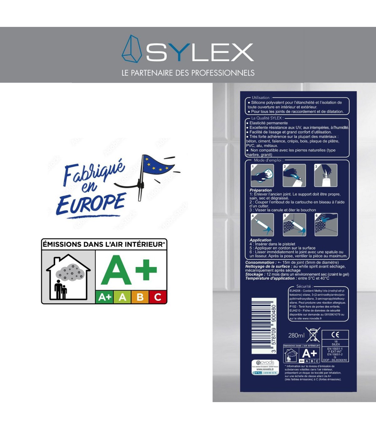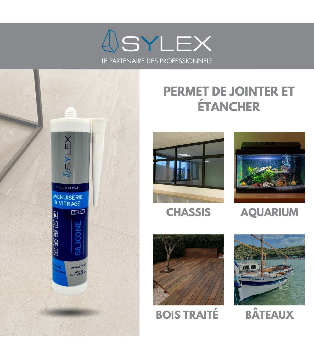 Mastic d'étanchéité Sylex Menuiseries et Vitrages en intérieur ou extérieur.