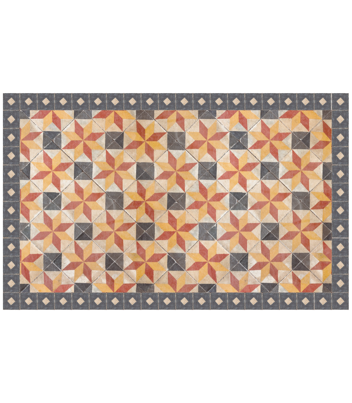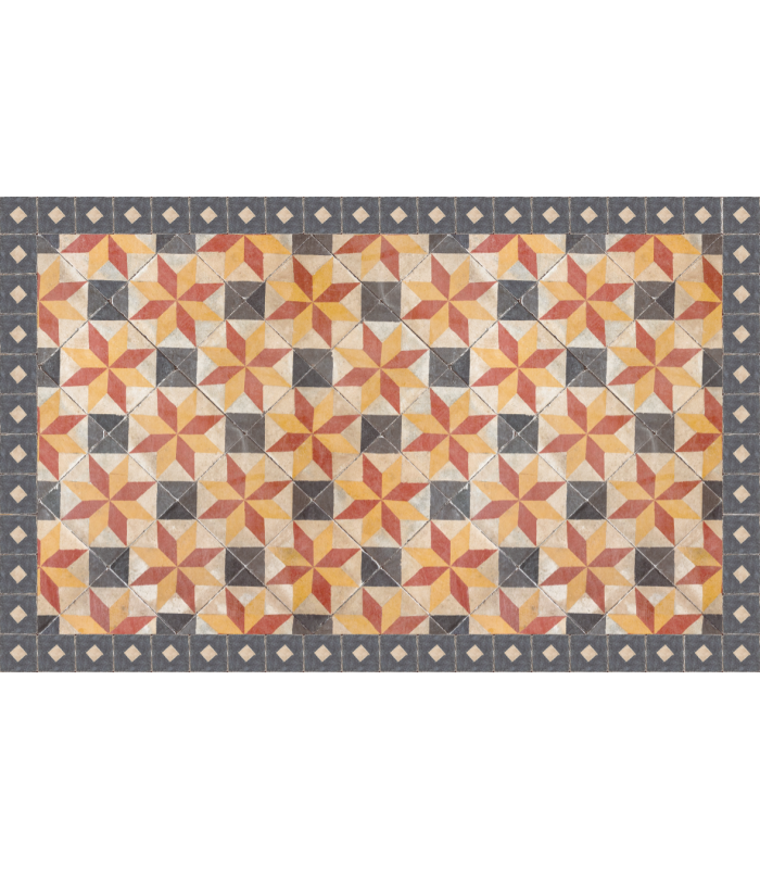 Le tapis vinyle Elise Beige fait parti de la tendance « carreaux de ciment », ce style revient à la mode ces derniers mois et permet de donner un côté retro à vos pièces de vie. Ce tapis possède un aspect vieilli afin de reproduire l'effet ancien des carreaux de ciment. Ce tapis vinyle peut aussi bien être utilisé dans une chambre comme descente de lit, que dans une salle de bain, une cuisine ou même en extérieur sur une terrasse.