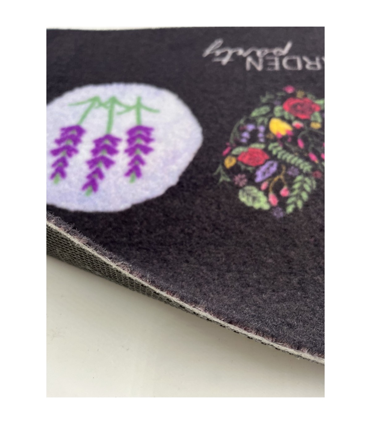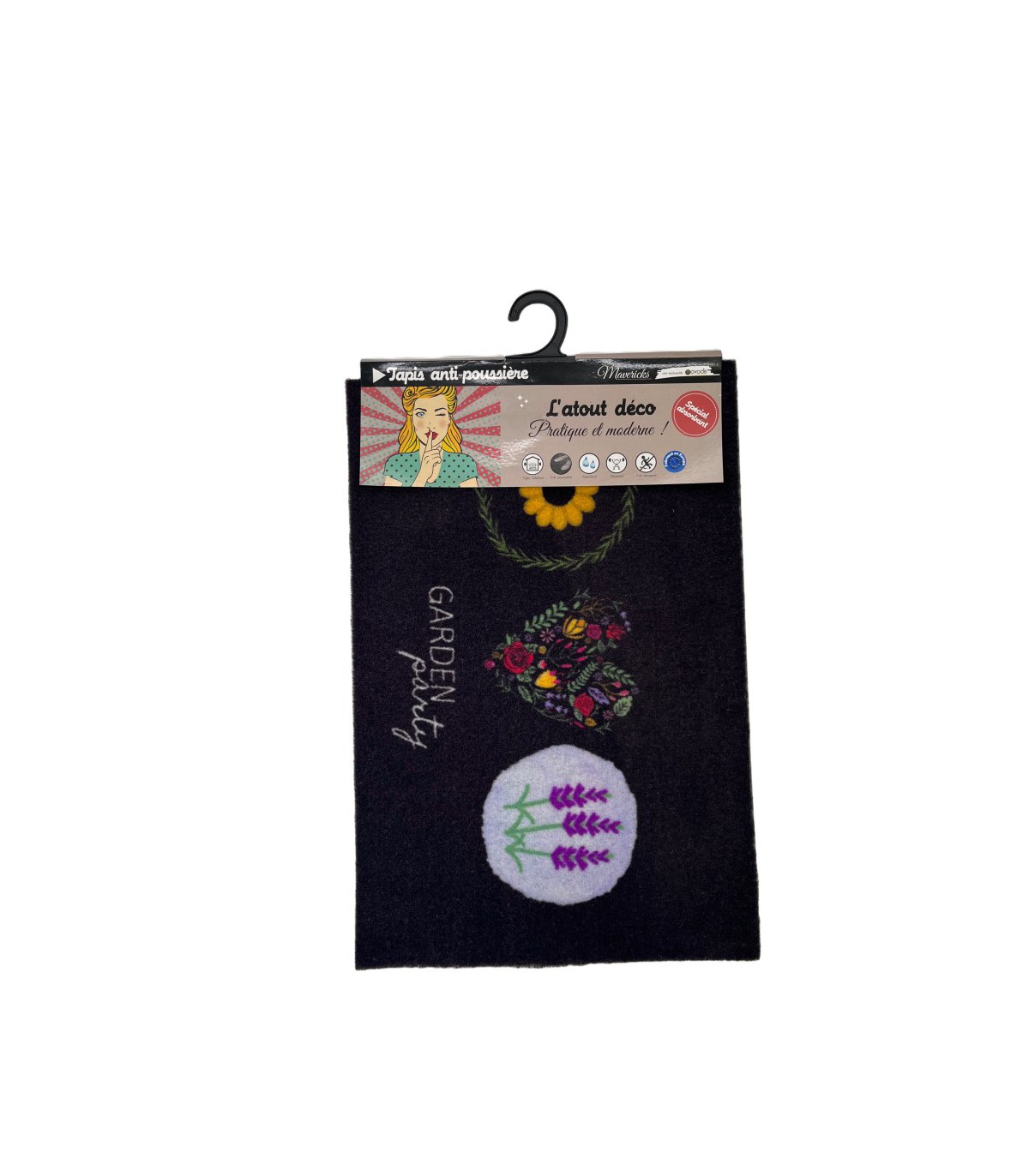 Le tapis intérieur - anti-dérapant et absorbant avec motifs fleuris et inscription "Garden party" est conçu pour protéger vos sols de saleté.