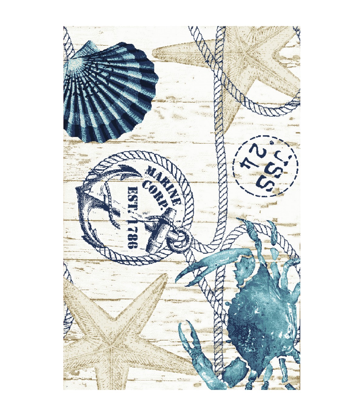 Avec ses motifs de crabes et de coquillages, ce tapis évoque l'été, la plage et la chaleur a votre espace tout en lui donnant une touche d'élégance.