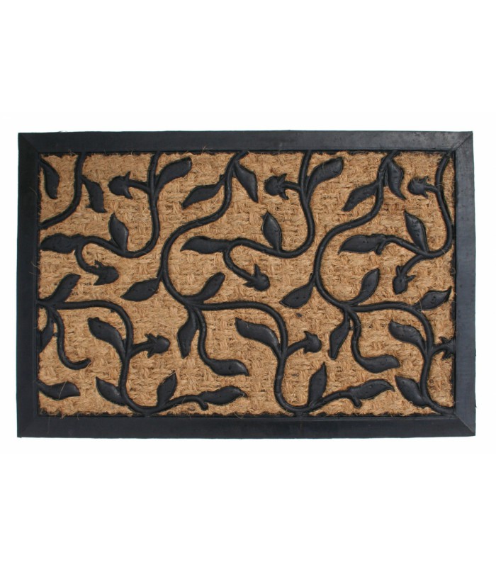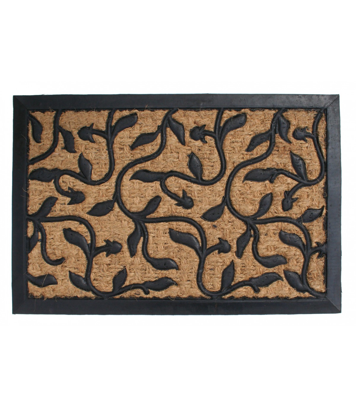 Paillasson ou Tapis d'entrée extérieur en fibres coco 100% naturelles avec motifs et envers en caoutchouc. Très résistant et absorbant, il permet un nettoyage efficace des semelles.