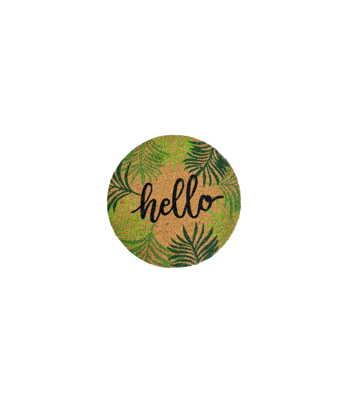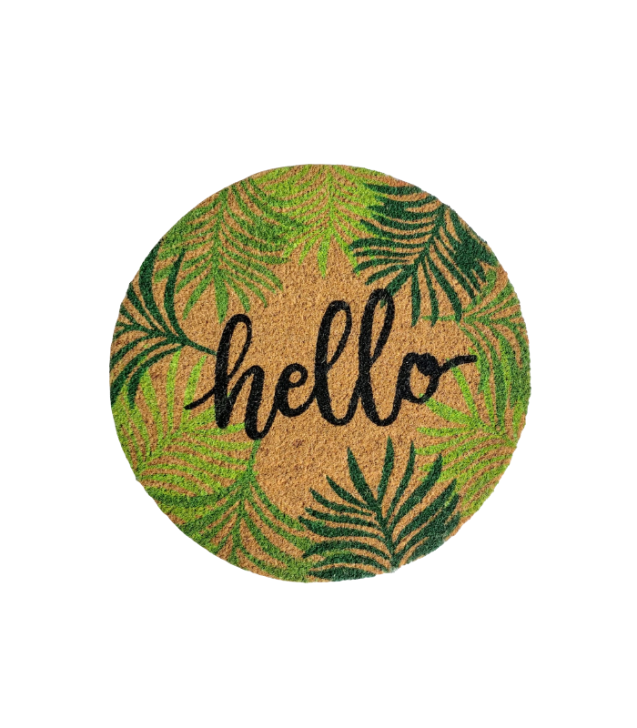 Ce paillasson NOVOTEX est en fibre de coco (100% végétale et naturelle) et sa semelle est en PVC. Impression « Hello ».