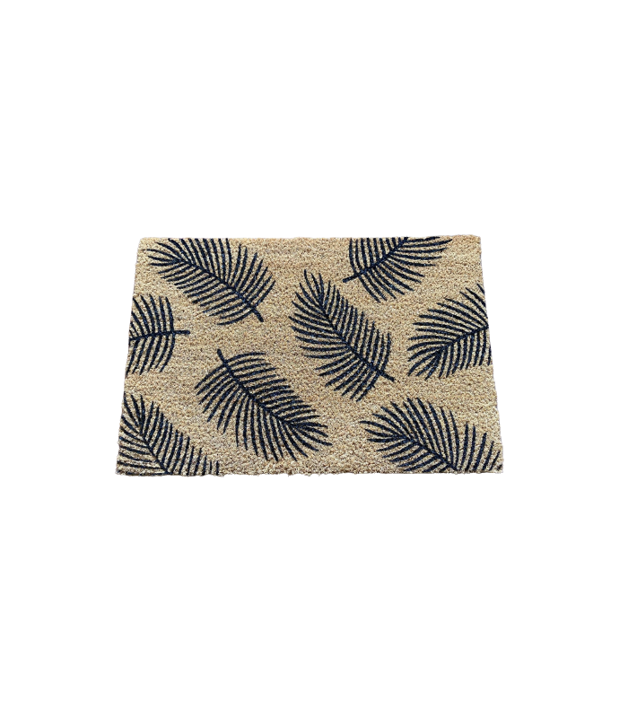 Ce paillasson NOVOTEX est en fibre de coco, 100% naturelle et végétale semelle PVC. Imprimé « Feuilles de palmes ».