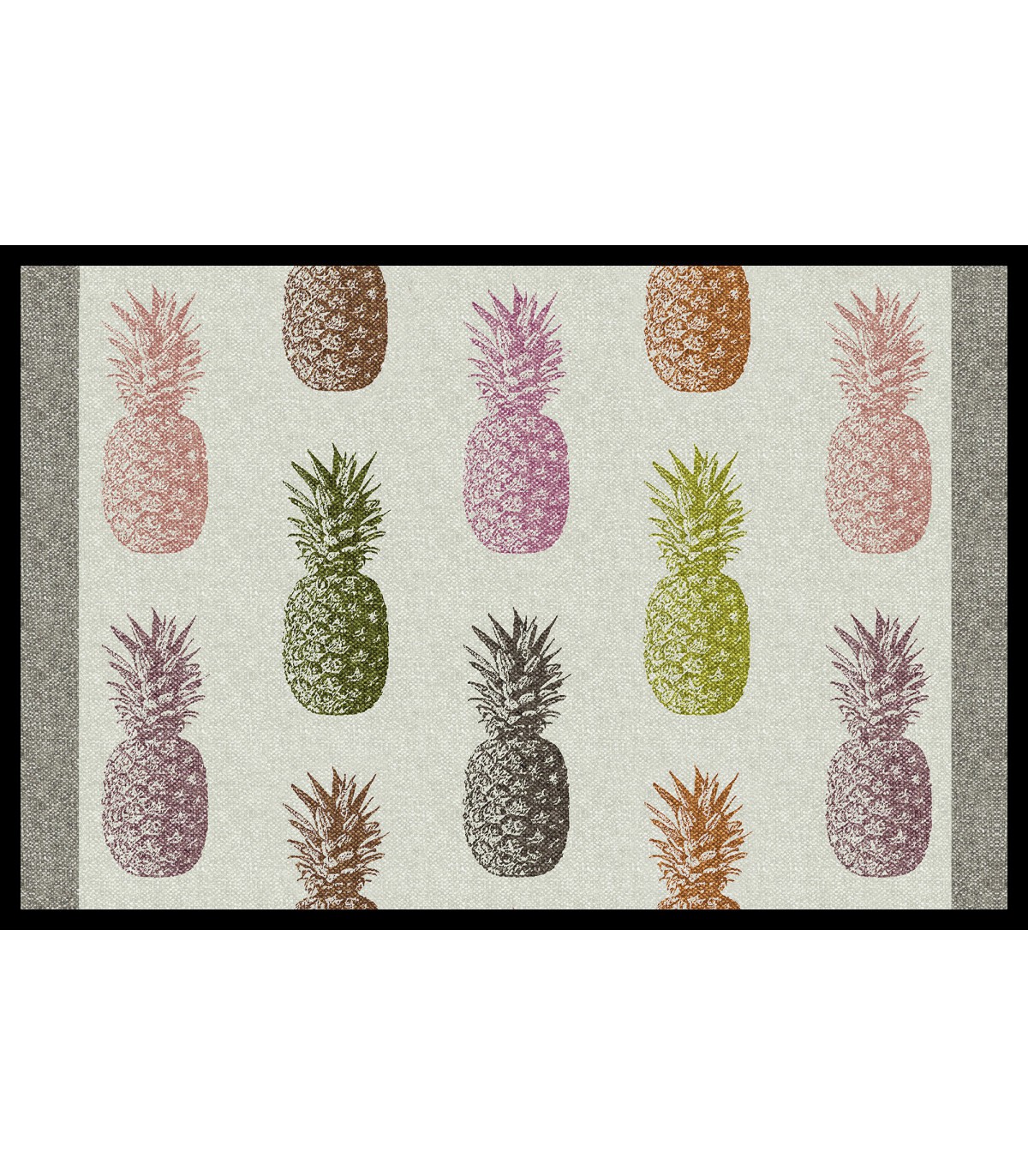 Le tapis intérieur - anti-dérapant et absorbant Pina avec motifs ananas multicolores est conçu pour protéger vos sols de saleté. Il s'agit d'un tapis de qualité premium qui a une très grande capacité d'absorption de l'humidité (2,5l m2) tout en apportant une touche décorative à votre intérieur.