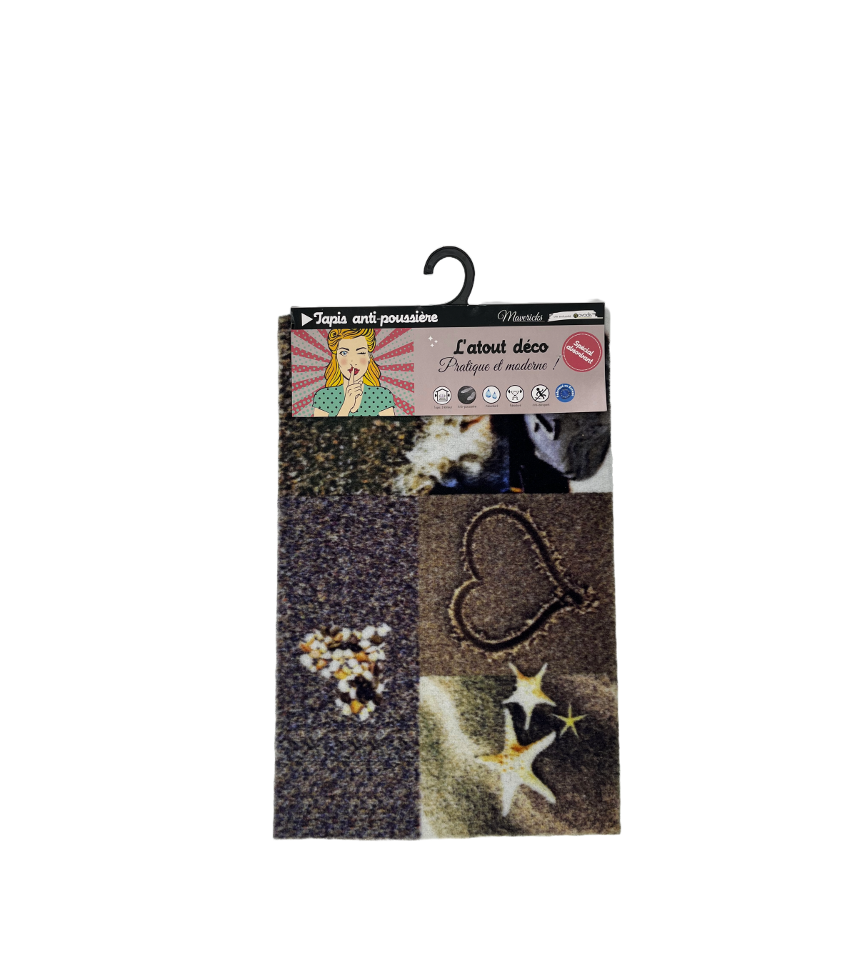 Tapis antipoussière imprimé intérieur de dimensions 40x60cm. Ce tapis est fabriqué en Europe et son velours est conçu à 100% en polyamide. Sa semelle est conçue en polyester non tissé et l'envers est en latex.