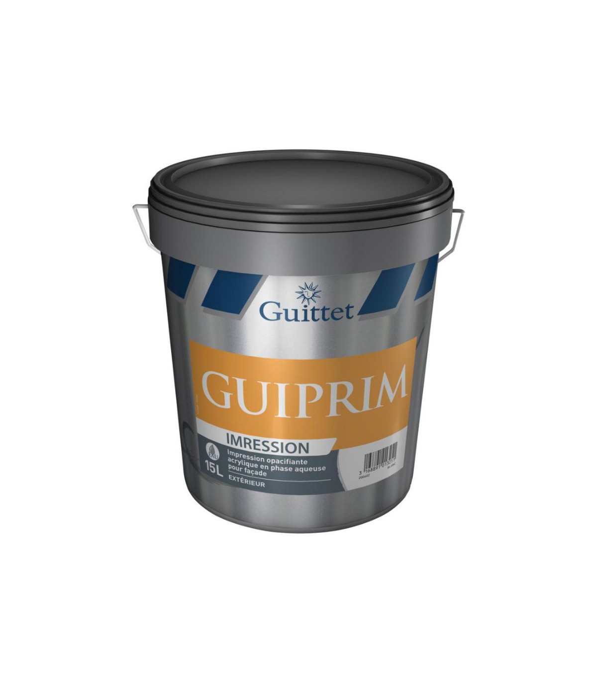 La peinture d’impression façade Guittet Guiprim est une peinture acrylique opacifiante spécialement conçue pour préparer efficacement vos supports extérieurs avant mise en peinture. Elle assure une adhérence optimale et homogénéise les fonds pour garantir une finition durable et esthétique.