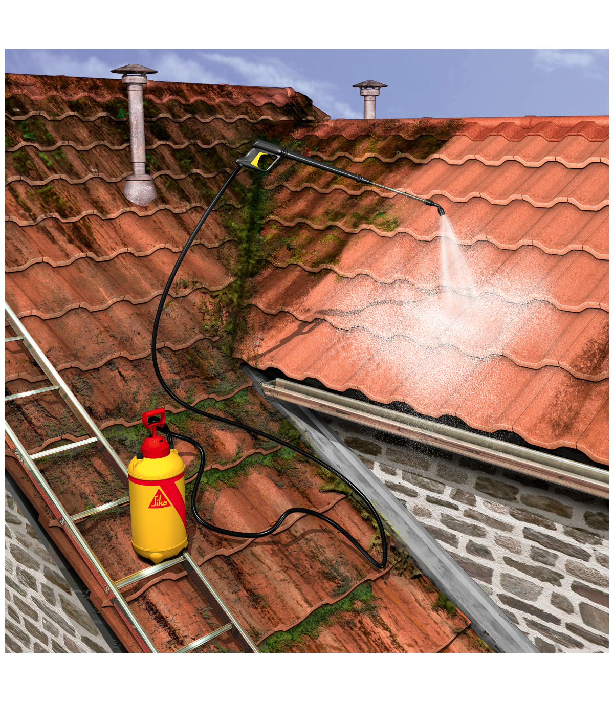 Avant l'application du Sikagard® Protection Tout en 1, il est impératif de s'assurer que le support soit propre, sec et sain. Toute contamination est susceptible d'entraver l'adhérence ou la pénétration du produit (poussières, salissures, traces de graisse, d'huile, de mousse, coulures ou traces de pollution) et doit être éliminée au préalable par brossage ou nettoyage à l'eau sous pression.