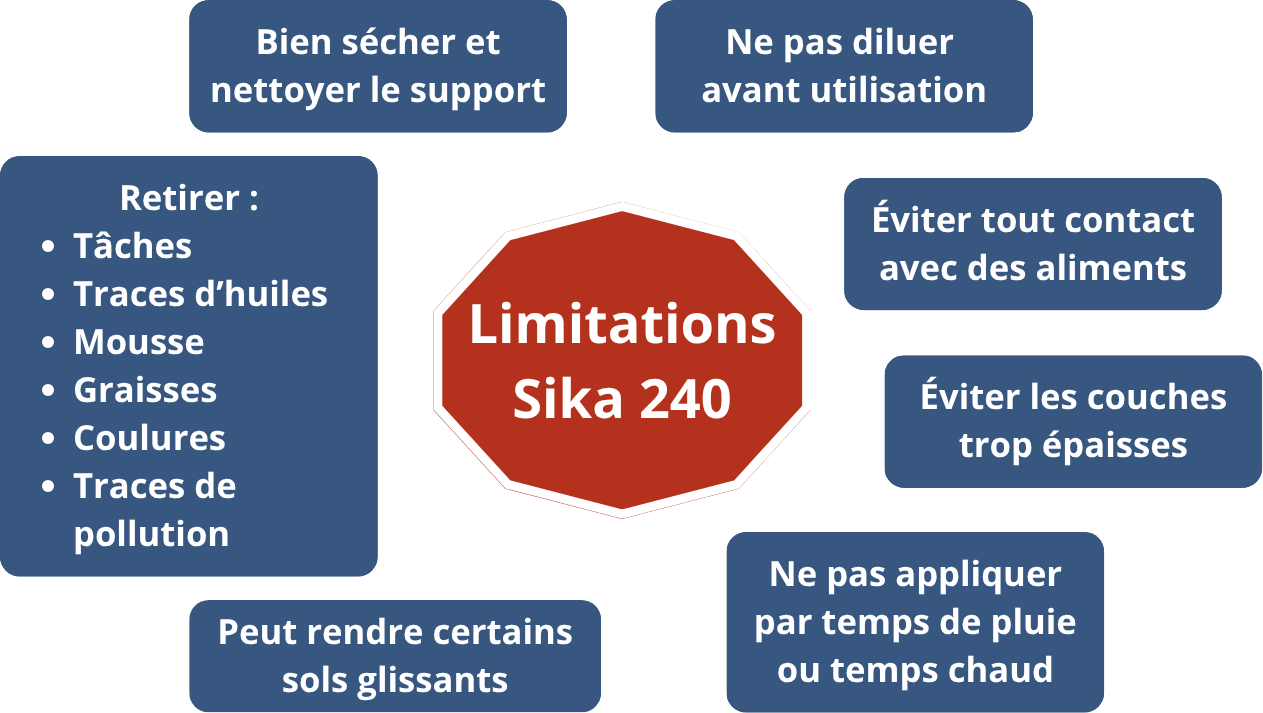 Nous vous recommandons de ne pas diluer le Sikagard 240 avec tout autre produit avant, pendant et après utilisation jusqu’au séchage complet à cœur du produit.
