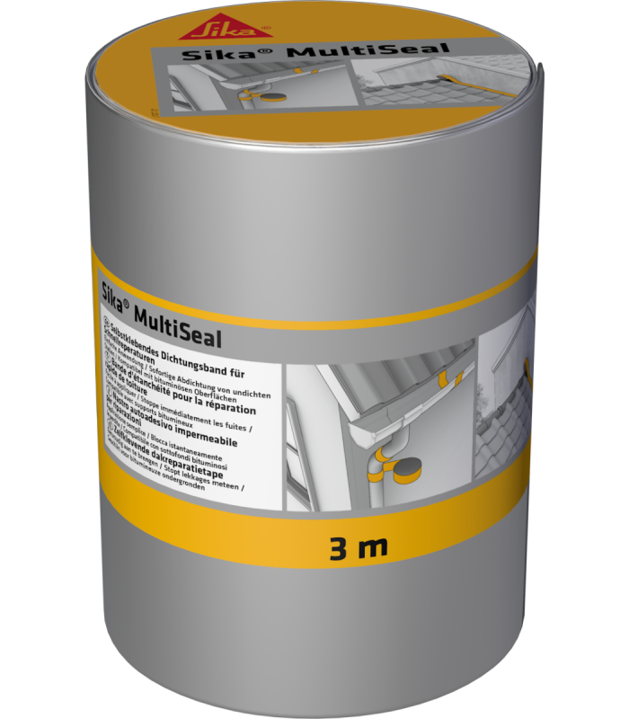 Sika MultiSeal est une bande bitumeuse auto-adhésive, renforcée avec du caoutchouc et protégée par un film aluminium. Conçue pour garantir une étanchéité durable, elle est idéale pour les travaux de réparation et de protection toiture, que ce soit sur des toits plats, des tuiles, des gouttières ou autour des cheminées. Ce produit d’étanchéité toiture empêche efficacement les infiltrations d'eau et les fuites grâce à sa forte adhérence, même en conditions humides.