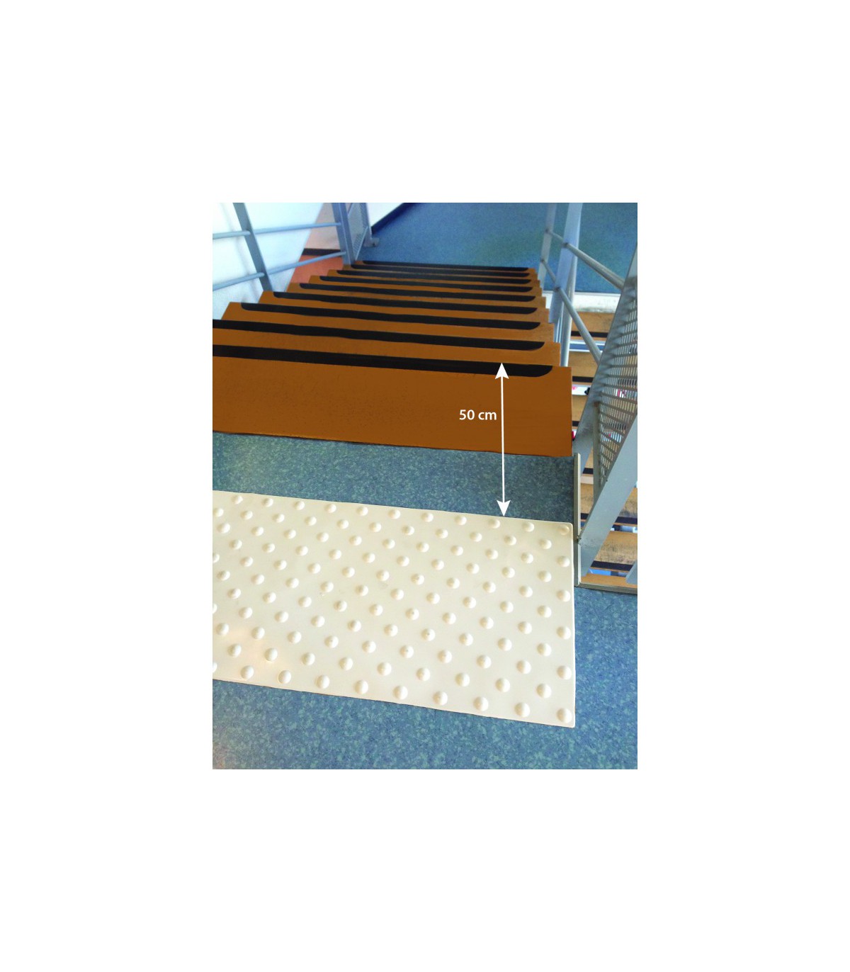 - Dalle podotactile adhésivée à poser sur : carrelage, sol résine, sols PVC, béton lisse, parquet, stratifié, peinture époxy