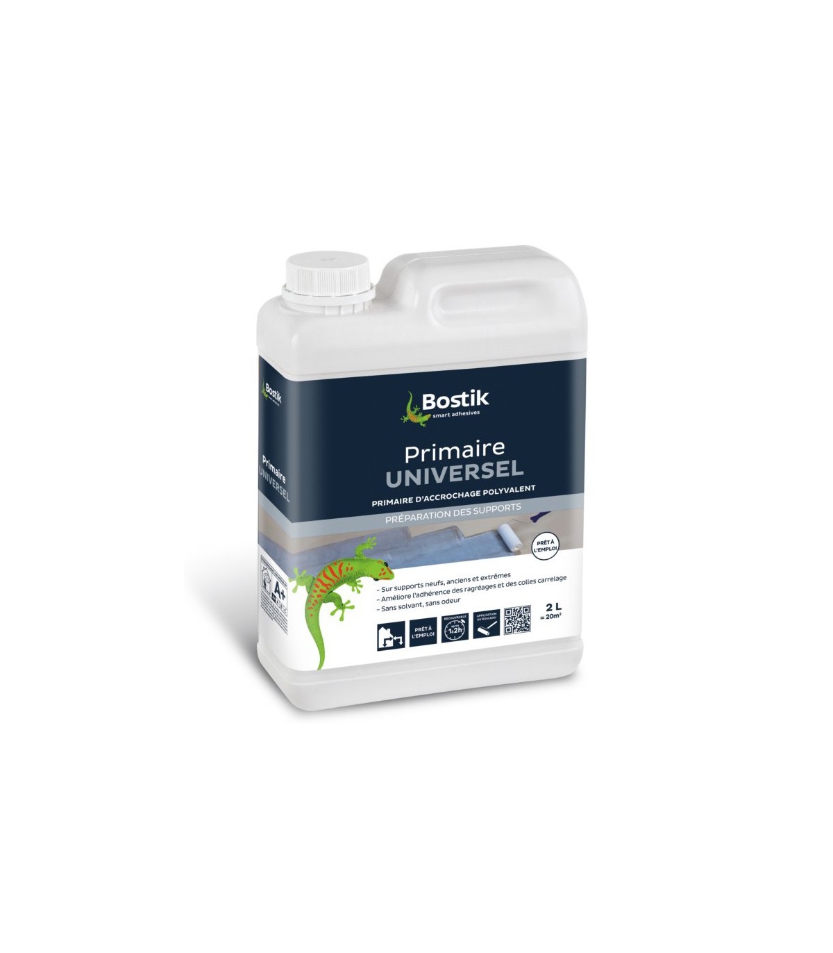 Primaire universel d'accrochage pour murs et sols en intérieur ou extérieur. Prépare les supports et assure une adhérence optimale des ragréages et des colles de carrelage. Produit prêt à l'emploi applicable au rouleau.