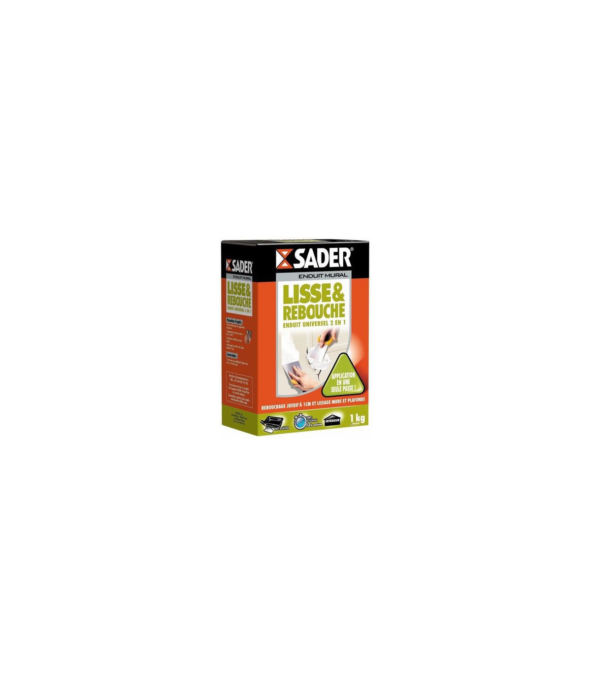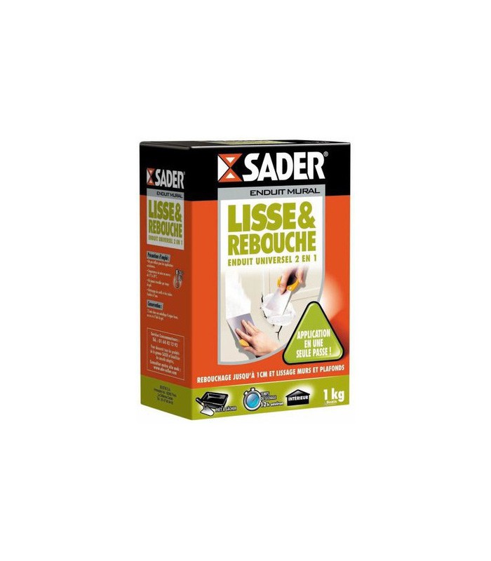 L'Enduit Mural Lisse et Rebouche Sader 1kg est un enduit universel 2 en 1, idéal pour reboucher jusqu'à 1 cm et lissage en une seule passe. Convient à une large gamme de supports intérieurs pour des travaux impeccables.