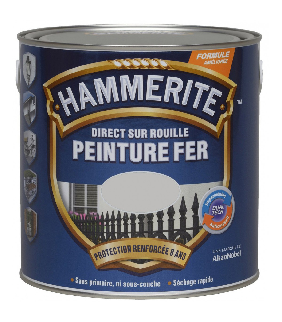 Les peintures Hammerite sont toutes spécialement conçues pour offrir une protection longue durée aux surfaces métalliques. Elles intègrent une technologie 3 en 1, qui permet d’appliquer directement la peinture sur la rouille sans nécessiter de sous-couche ni de primaire d’accrochage. Cette spécificité les rend particulièrement adaptées aux ferronneries extérieures exposées aux intempéries.