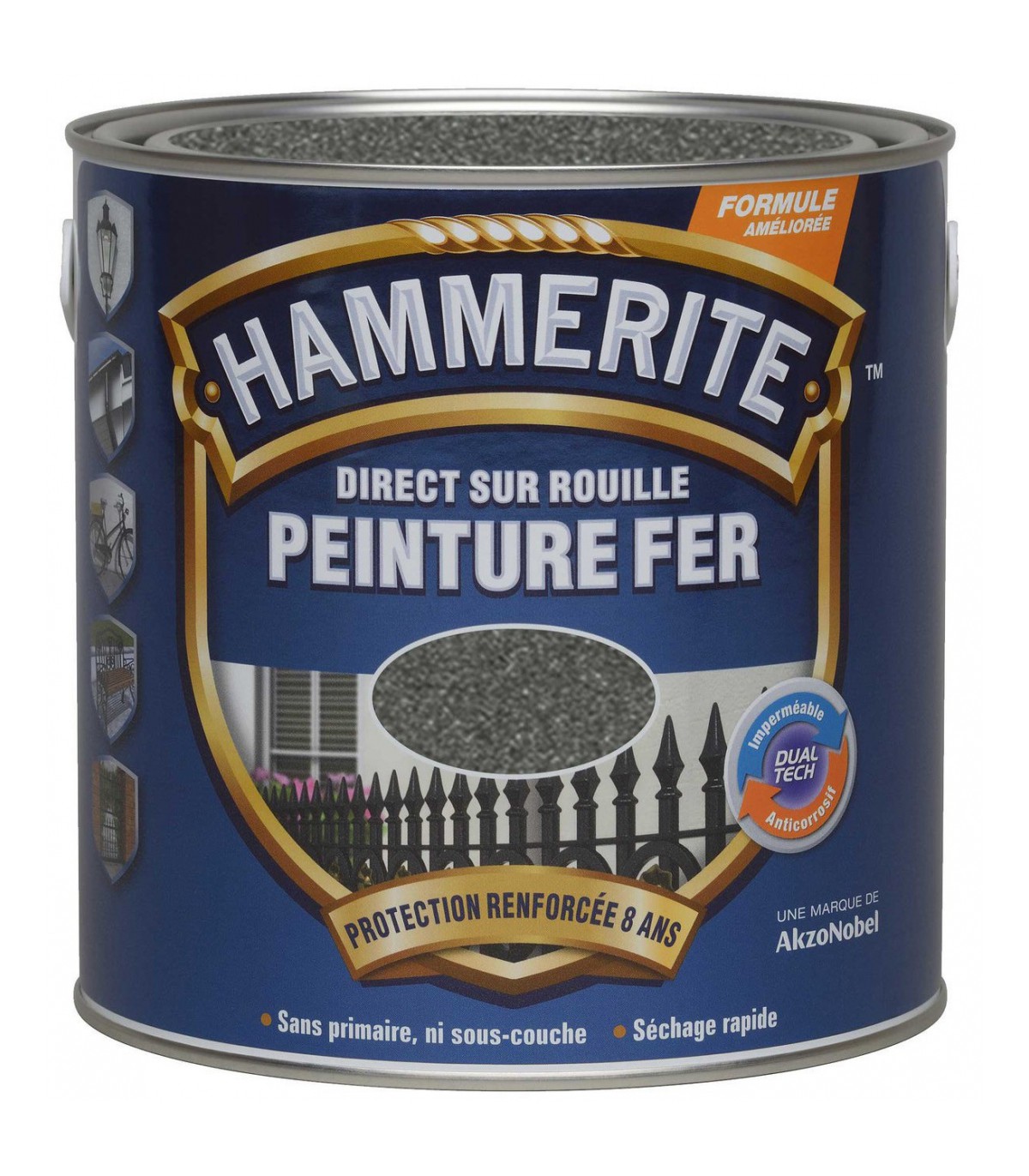 La peinture fer direct sur rouille forgé est le produit Hammerite avec cette finition ayant la meilleure qualité. La facilité d'application de la peinture, sa résistance aux conditions extérieures et sa finition sont des avantages primordiaux. N’hésitez pas à partager votre avis après utilisation !