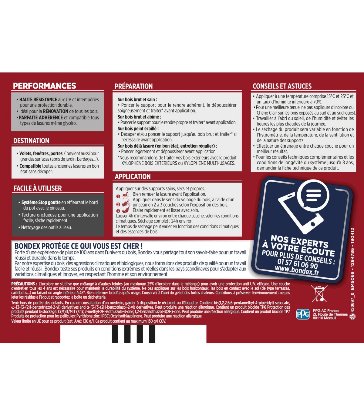 Bondex Lasure Très Haute Protection Satin 8 ans - 2,5L - INCOLORE 58110044INC 3261544319417 42.70 6.90