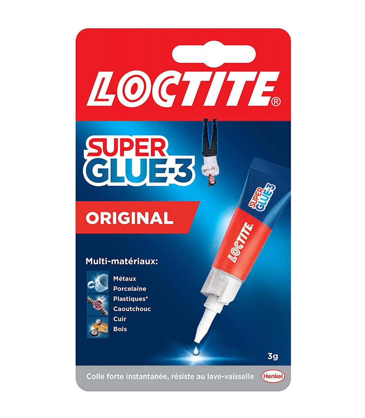 Loctite Super Glue-3 Original. Colle transparente instantanée super puissante, pour coller en quelques secondes la majorité des matériaux. Sa formule ultra puissante peut coller jusquà 270kg au cm2.