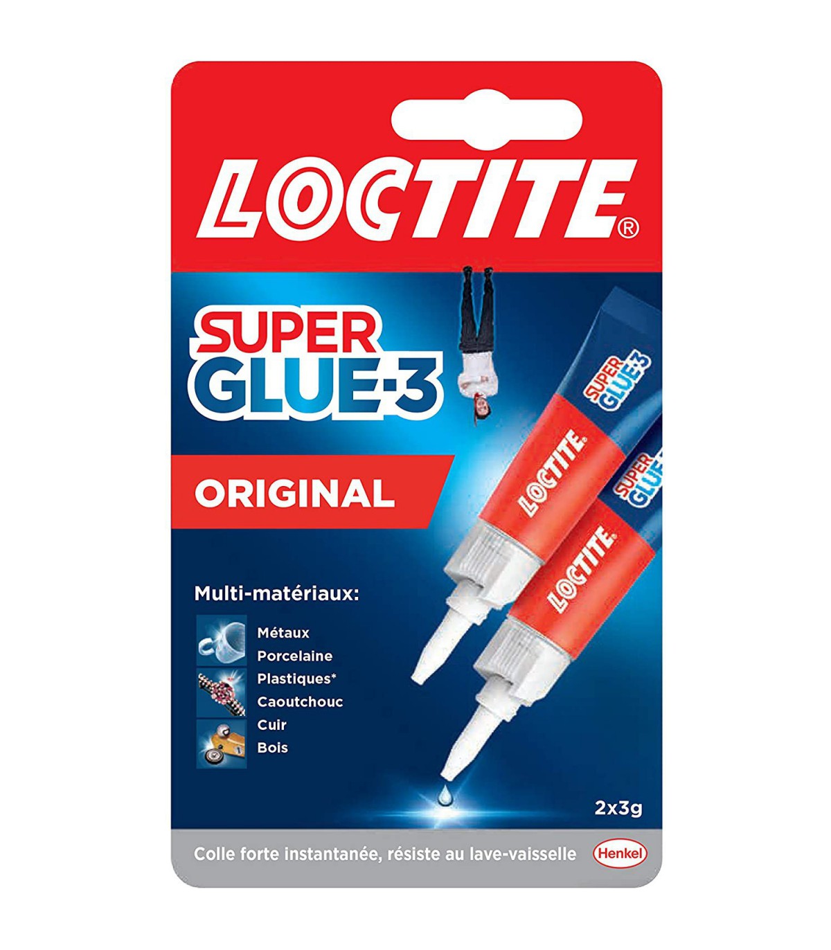 Loctite Super Glue-3 Original Liquide format 2x3g. Colle transparente instantanée super puissante, pour coller en quelques secondes la majorité des matériaux. Sa formule ultra puissante peut coller jusquà 270kg au cm2.