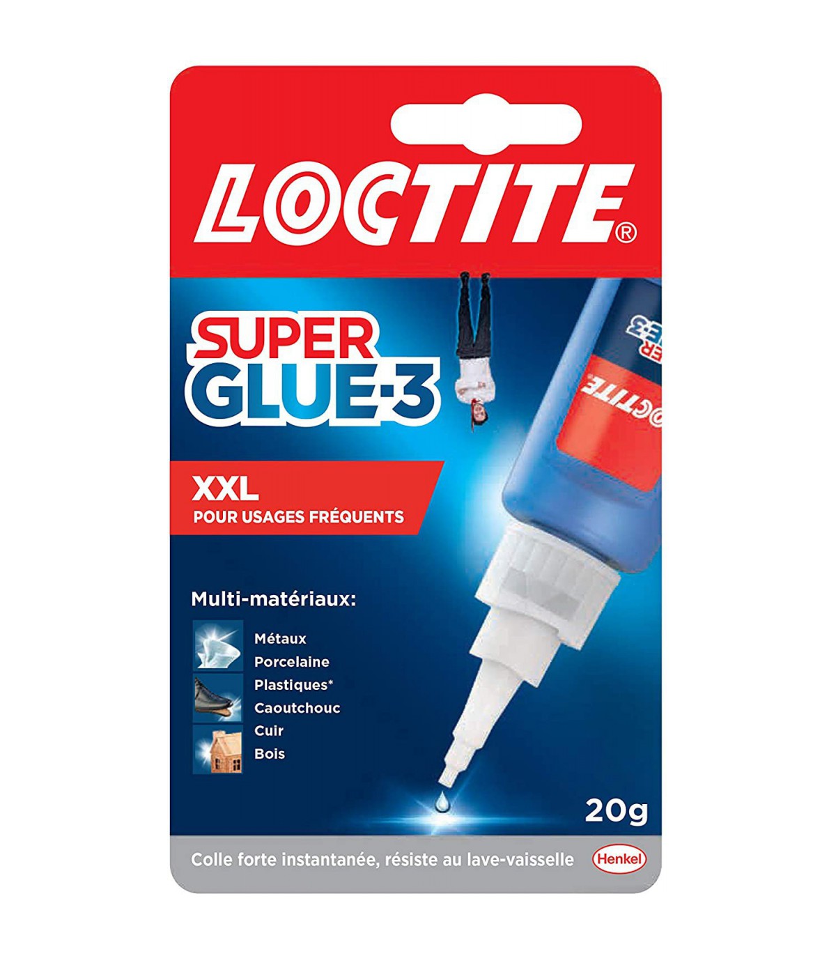 La colle Loctite Super Glue 3 XXL est une colle conçue pour pouvoir répondre à un large éventail de besoins, vous pourrez ainsi vous en servir pour vos travaux domestiques, de bricolage ou de réparation automobile, elle s'utilise aussi bien en intérieur qu'en extérieur. Cette colle Loctite Super Glue 3 XXL permet de coller la plupart des matériaux (caoutchouc, métaux, plastique, bois, cuir...) en seulement quelques secondes.