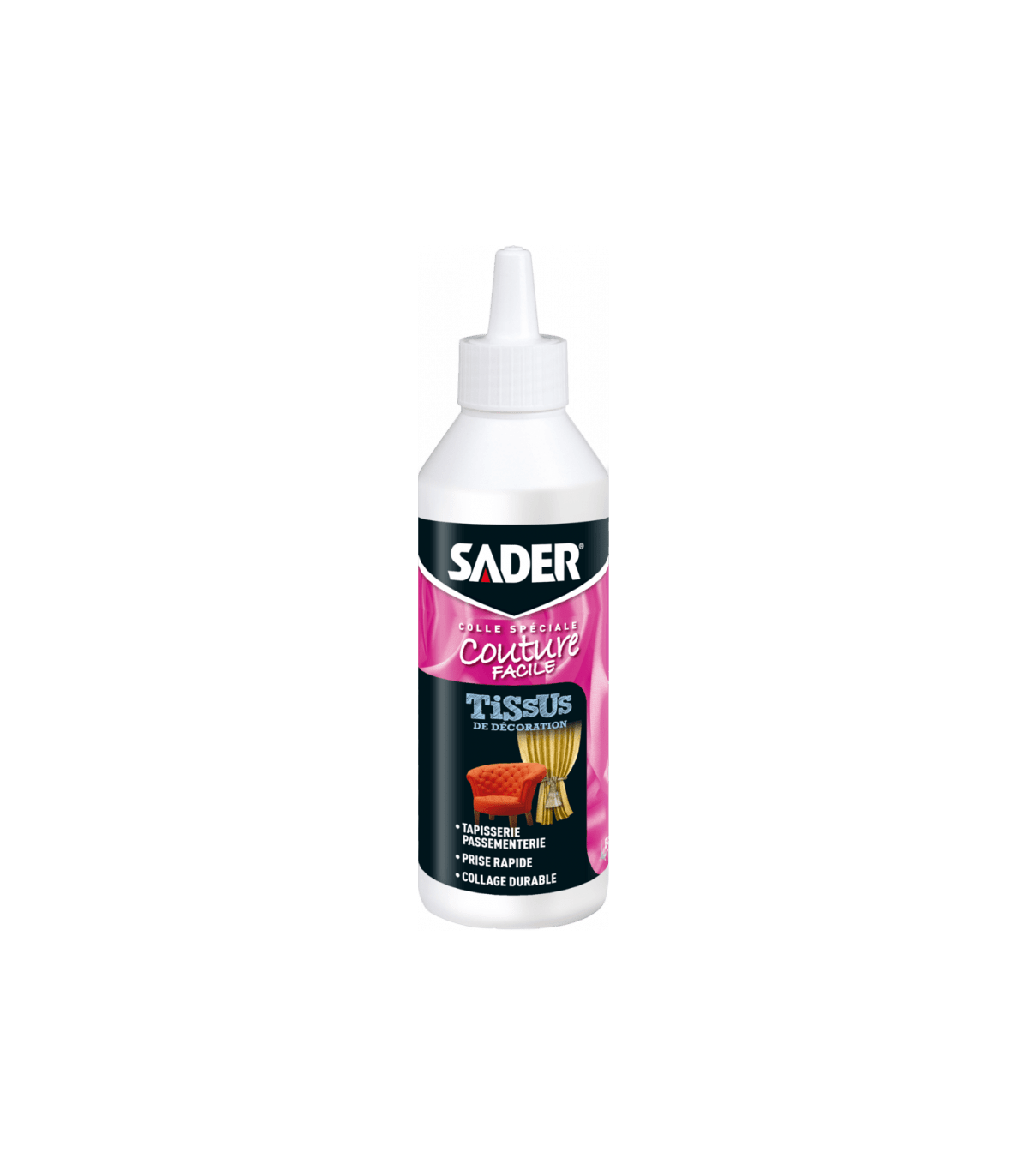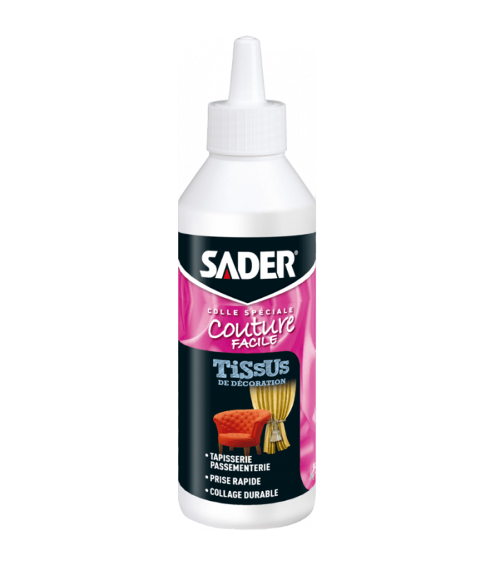 La colle SADER TISSUS DE DECORATION est une colle idéale pour tous vos travaux de tapisserie et passementerie.