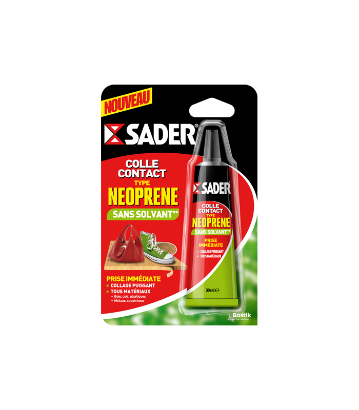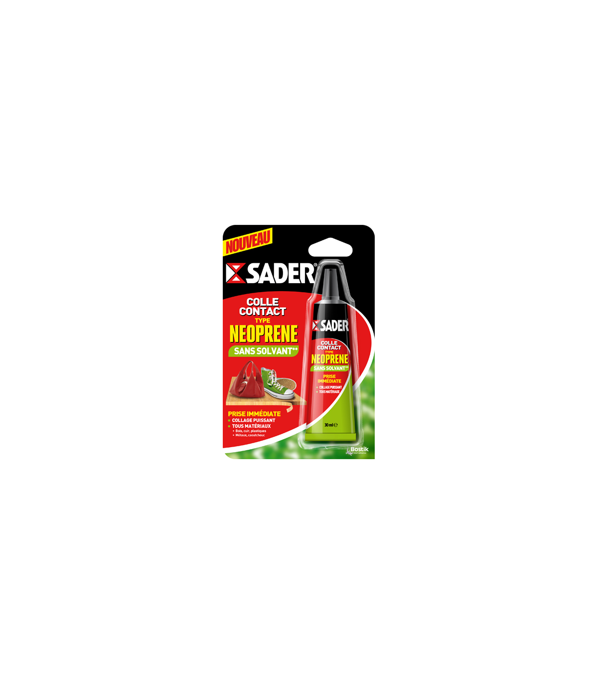 La COLLE CONTACT SADER TYPE NÉOPRÈNE SANS SOLVANT est spécialement formulée pour tous les collages d'assemblage et de placage de la plupart des matériaux sur tous supports. Respecte l'environnement. Translucide au séchage.