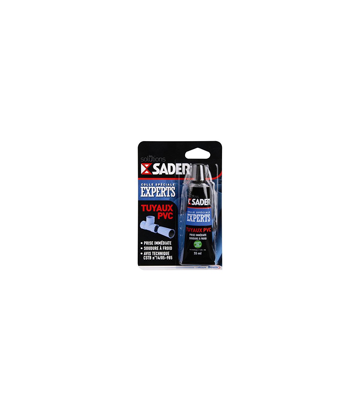 La colle SADER spéciale TUYAUX PVC est une colle haute résistance qui vous permet de réaliser de véritables soudures à froid du PVC. Elle est idéale pour l'assemblage de tubes et raccords pour conduites d'eau froide ou chaude en évacuation ou en pression, gouttières et descentes d'eaux pluviales, eaux usées, installations sanitaires, conduits d'aération, profilés et huisseries en PVC rigide.