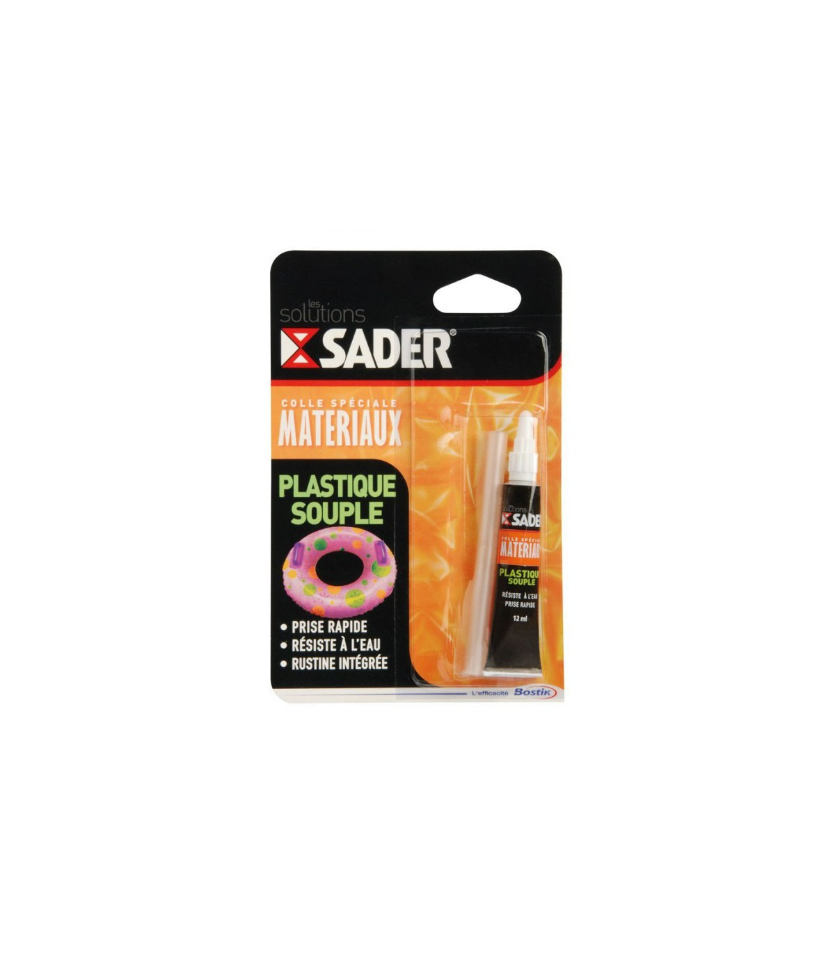 La colle SADER spéciale PLASTIQUE SOUPLE est une colle résistante à l'humidité, qui répare tous vos objets en PVC souple et caoutchouc. C'est la colle idéale pour réparer : matelas et bateaux pneumatiques, piscines gonflables, bouées, ballons, bâches plastiques, toiles de tente, liners de piscine. Elle convient également pour les vêtements de pluie (cirés), bottes et chaussures en plastique ou caoutchouc.