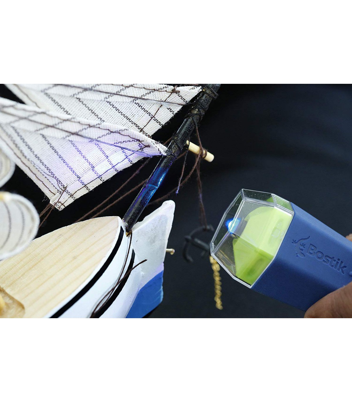 - Appuyer sur l'ampoule et diriger la lumière sur la zone de collage pendant environ 15 secondes pour un séchage définitif