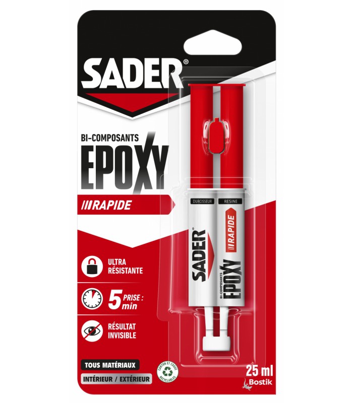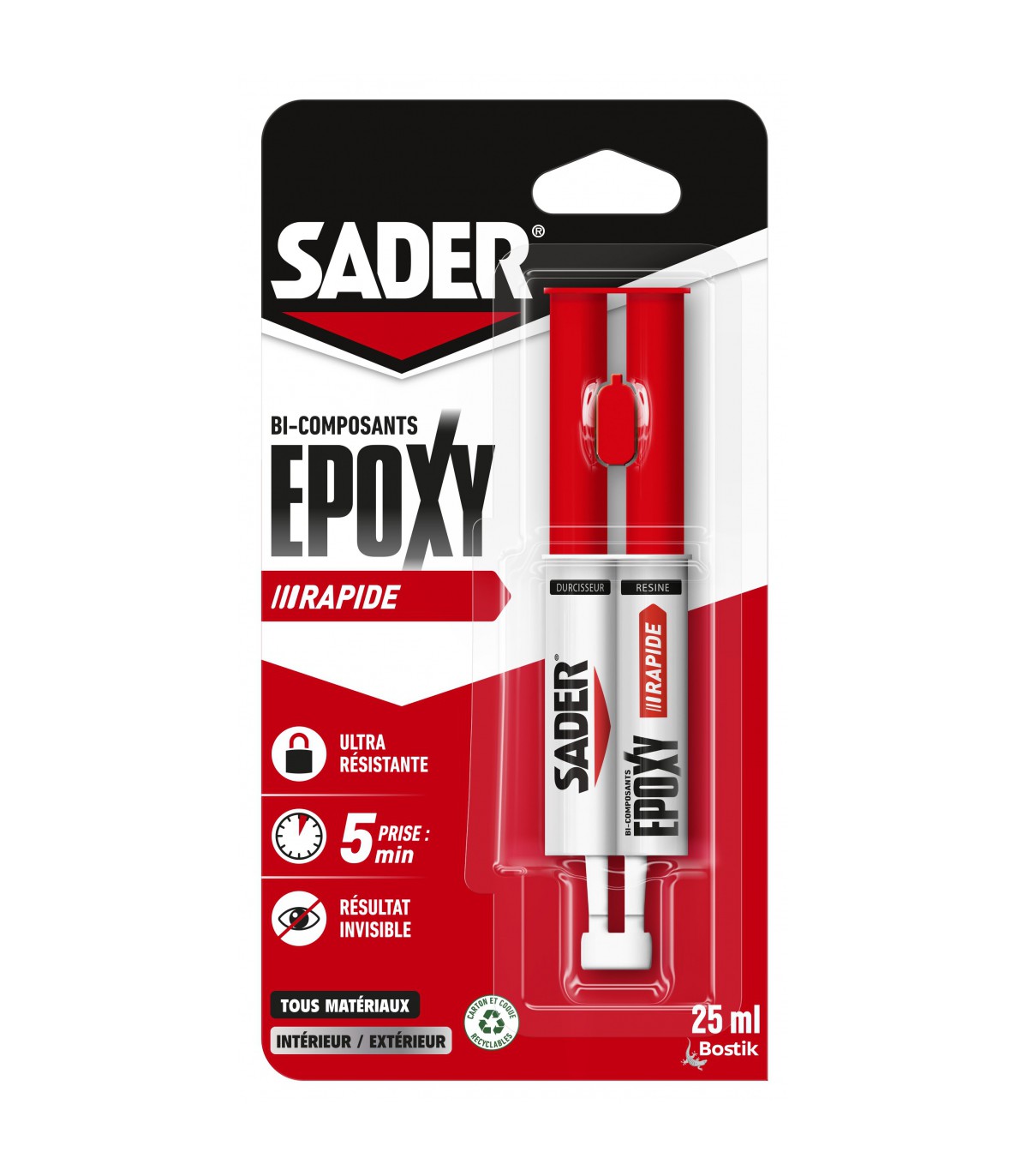 SADER colle époxy RAPIDE est la colle pour tous ceux qui veulent un collage rapide (prise en 5 minutes) et ultra résistant dans le temps.