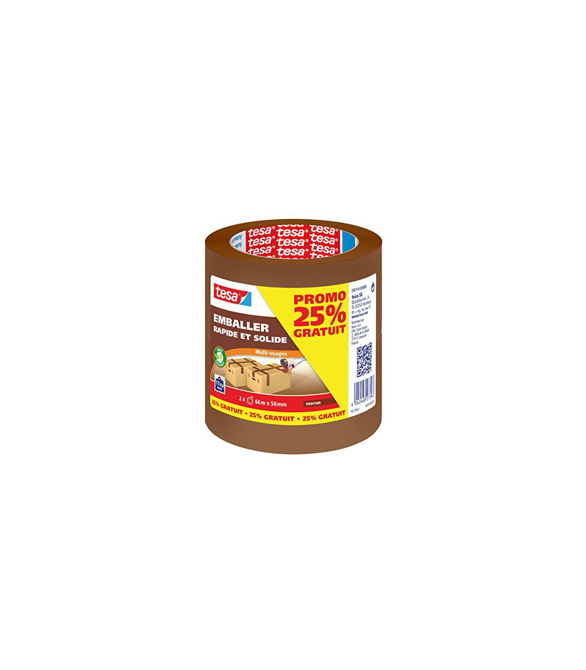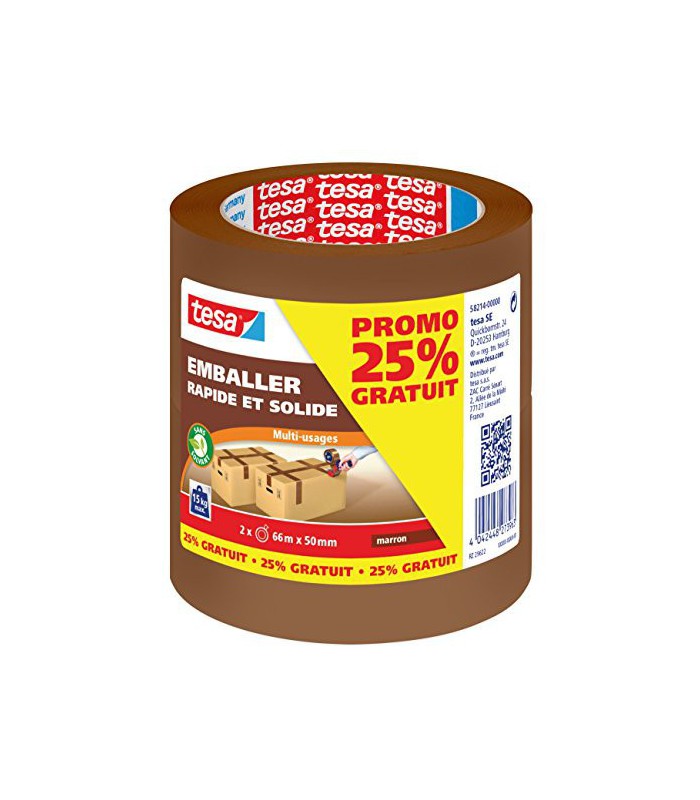 Tesa Emballer Rapide et Solide est un adhésif d'emballage conçu pour toutes sortes d'applications domestiques. Polyvalent, il est très pratique pour fermer un colis ou un carton, ou emballer un cadeau. Grâce à son support en polypropylène, il offre une résistance élevée aux UV. Son revêtement adhésif ultra solide garantit une résistance élevée aux déchirures et une adhérence optimale.