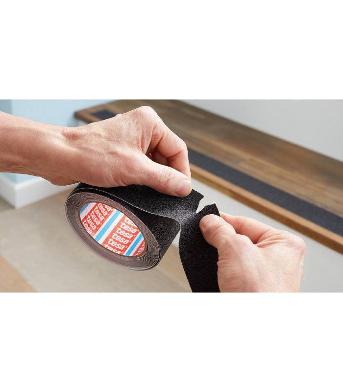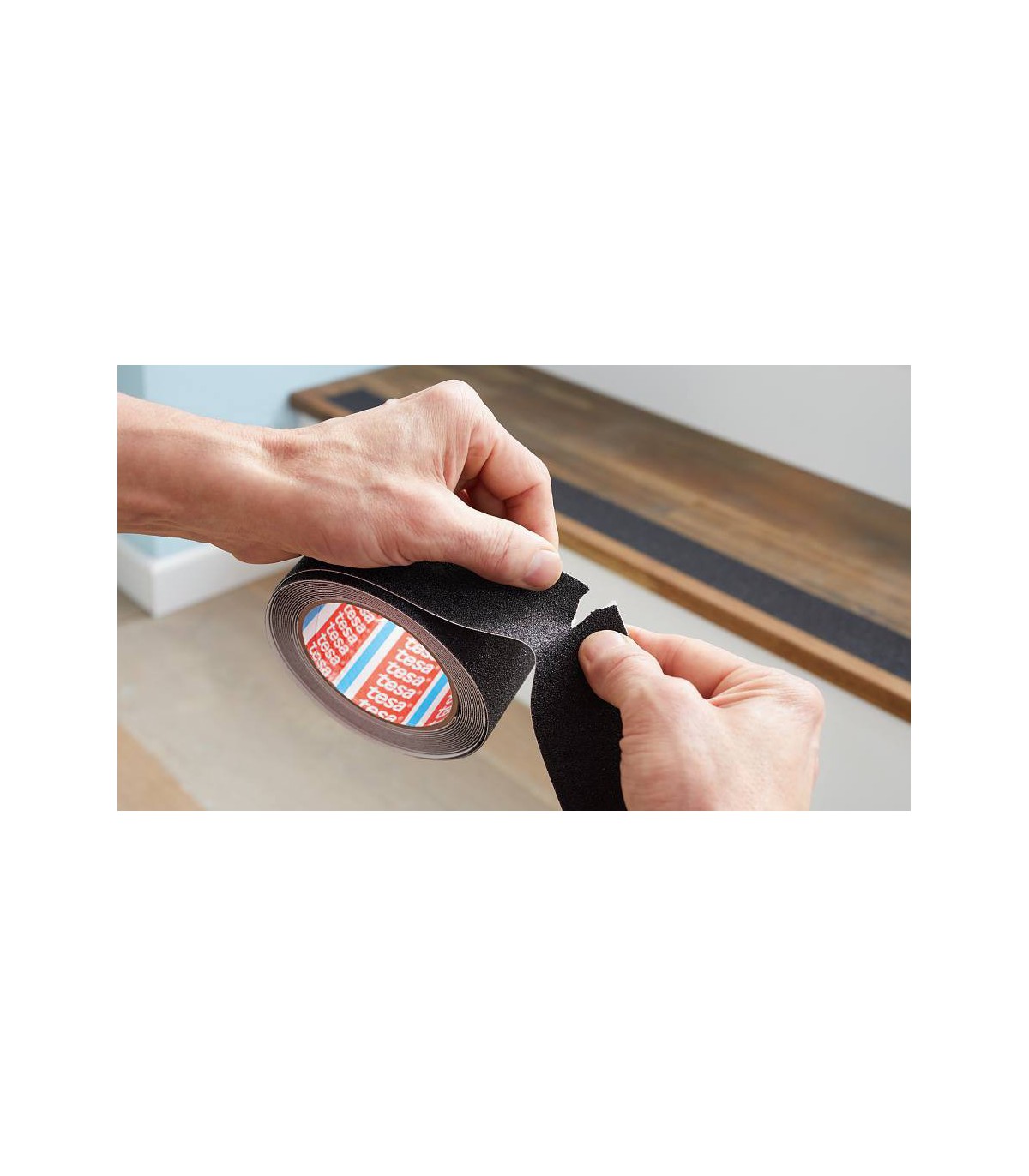 Sécurisez vos espaces avec le ruban adhésif antidérapant noir Tesa, spécialement conçu pour réduire efficacement les risques de glissade dans les zones sensibles. Avec ses 5 mètres de longueur et sa largeur de 25 mm, ce ruban s’adapte parfaitement aux marches d’escaliers, rampes d’accès, sols lisses, zones industrielles, bateaux, garages ou encore espaces publics.