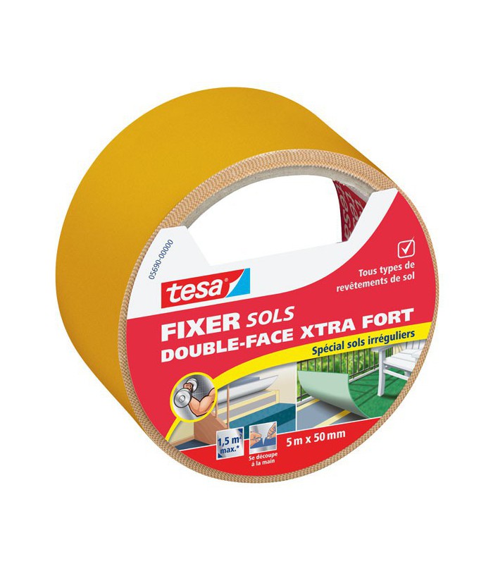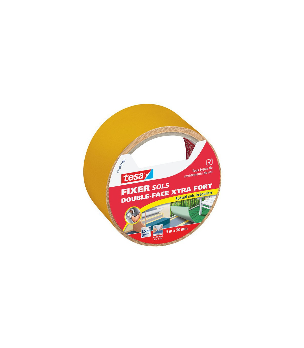 Adhésif fixation extra-forte double-face pour sols irréguliers 5m x 50mm