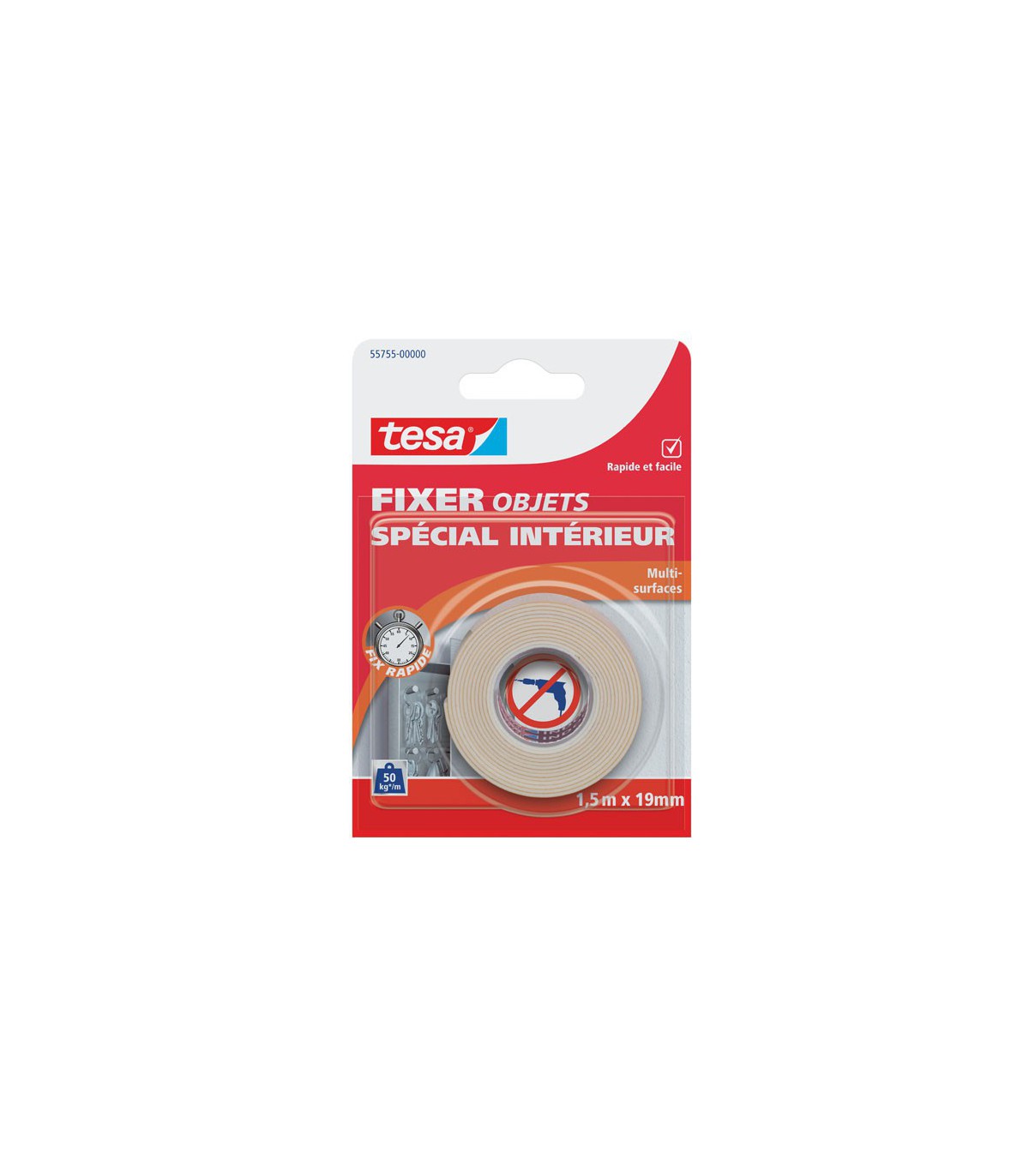 Adhésif fixation objets intérieurs 1,5m x 19mm