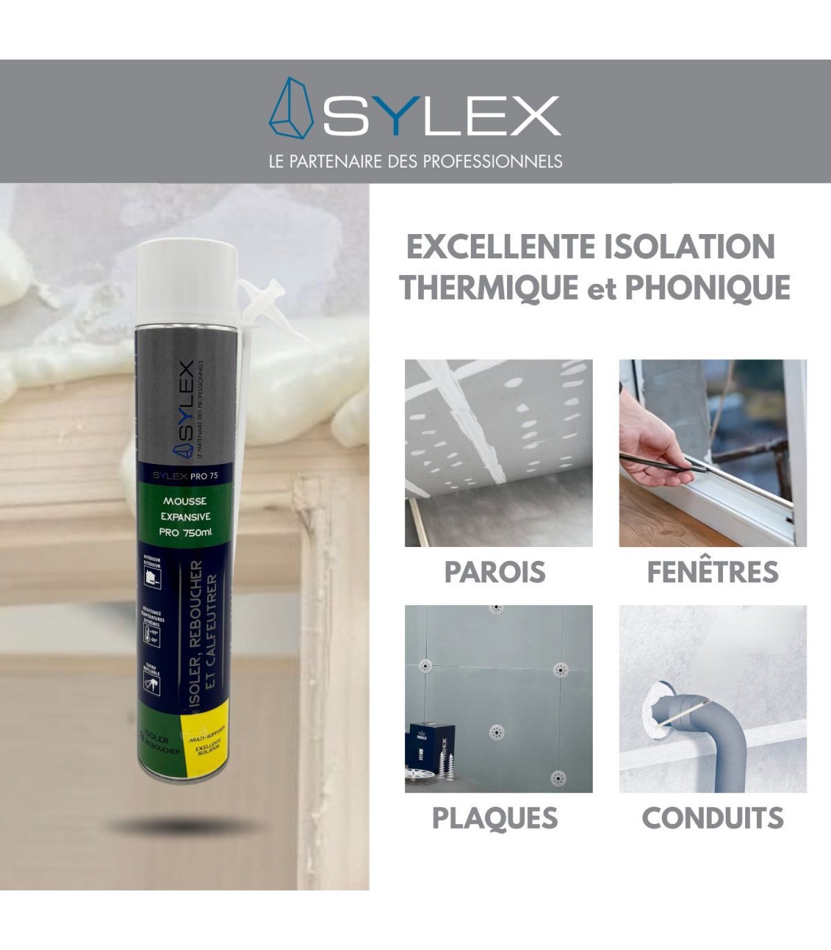 - Vides entre châssis de fenêtres ou de portes et mur
