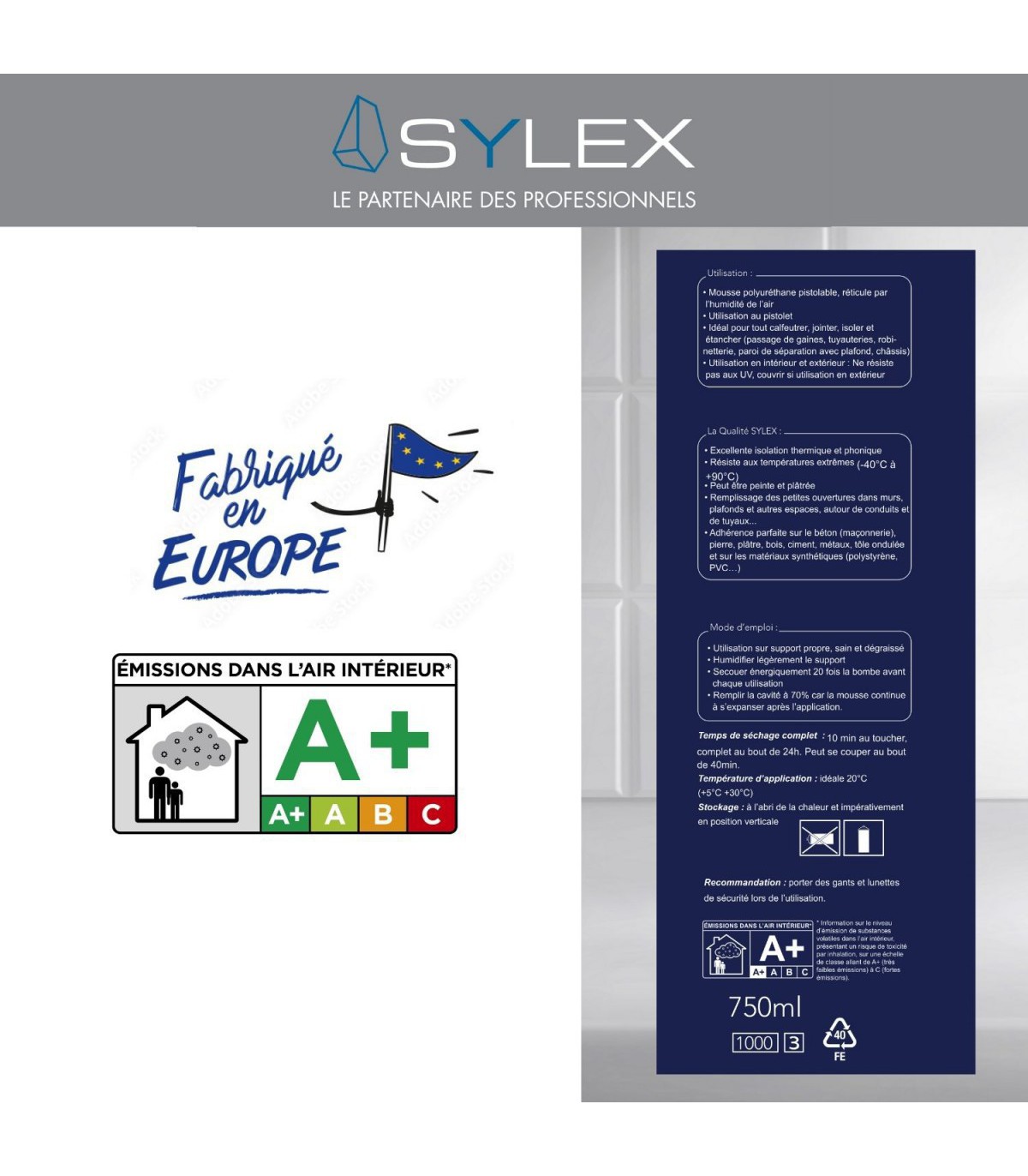| Température d’application | Ambiante : +5°C à +30°C (optimale à 20°C) Bombe : +5°C à +25°C (optimale à 20°C) |