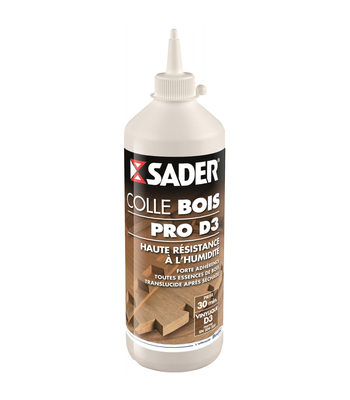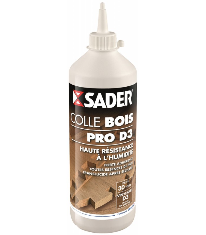 La colle à bois Sader Pro D3 a été conçu pour résister à l’humidité et fonctionnera sur du bois humide. Elle commencera à adhérer au bout de 10 min et prendra environ 24 heures à sécher. Le format « biberon » permet de la réutiliser au besoin.