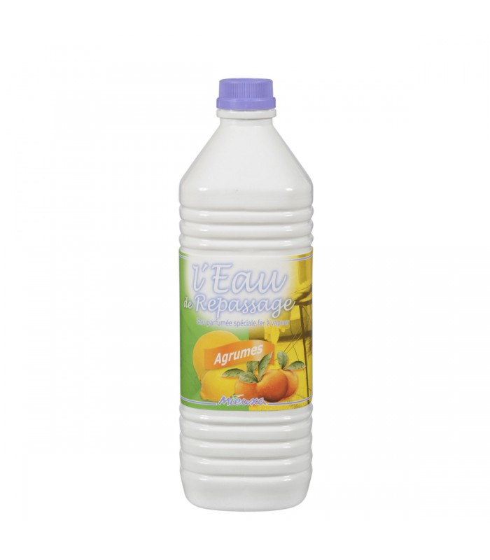 Eau de repassage délicatement parfumée aux agrumes spécialement conçue pour les fers à repasser à vapeur.