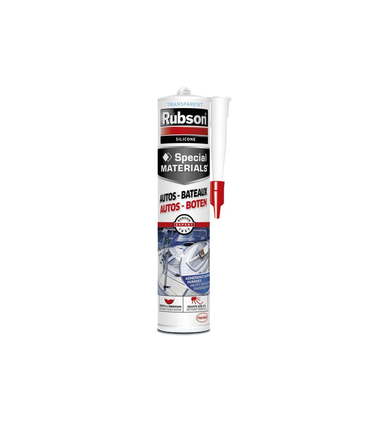 Mastic d'étanchéité Rubson spécial automobiles, bateaux, caravanes, camping-cars à base d'élastomère silicone mono composant de type acétique.
