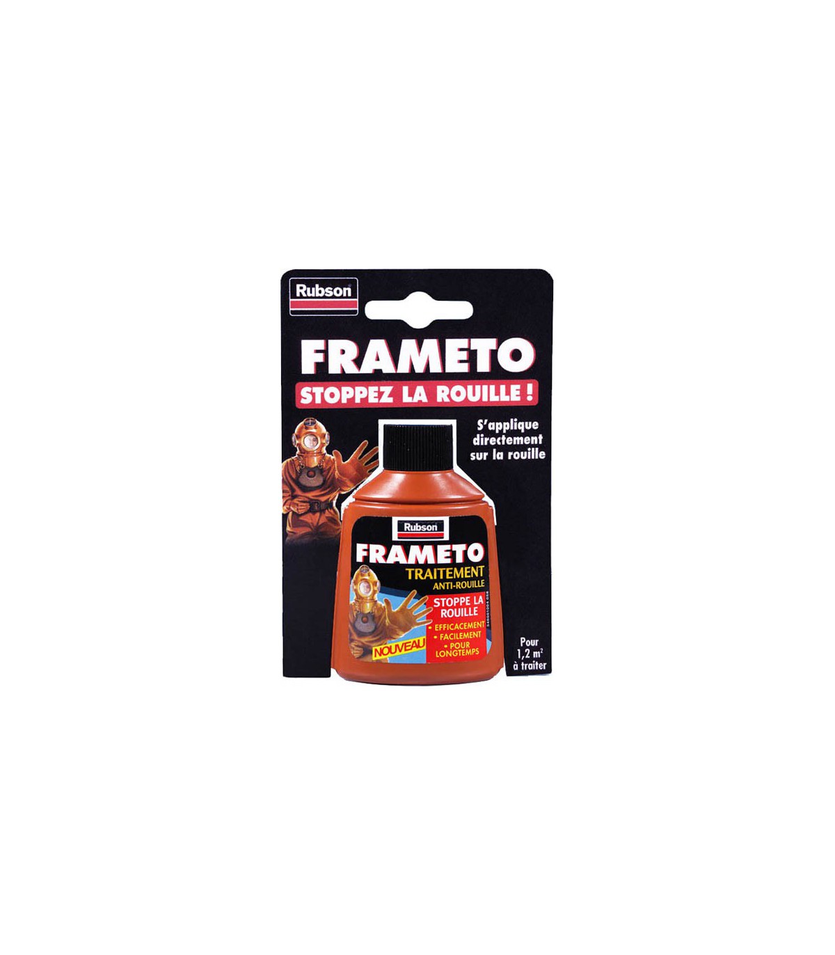Le traitement anti-rouille Frameto Rubson offre un efficacité ultra-rapide et protection longue durée. Il s'applique directement sur la rouille, pour métaux ferreux, portail, mobilier de jardin, cuisinière. Le Frameto Rubson est facile à appliquer et il est conçu sans plomb.