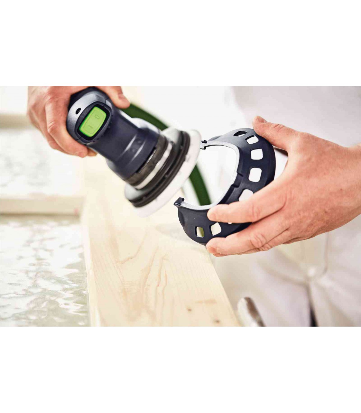 Son sac récupérateur Longlife intégré garantit un travail propre et sans poussière, tandis que le capot protecteur permet de poncer jusqu’au bord sans nécessiter de retouches.