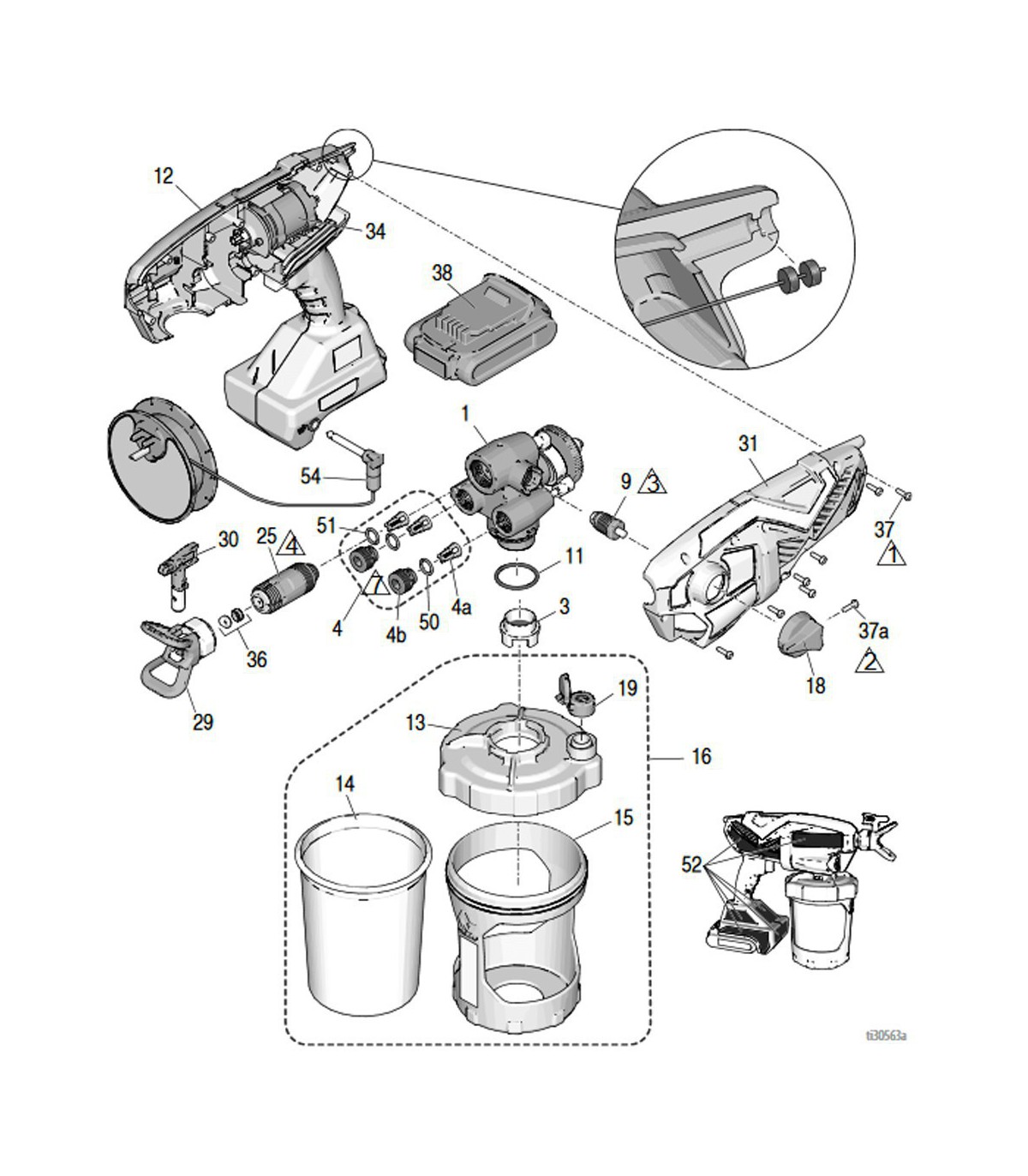 Le système de godet Flexliner permet de fixer des petits réservoirs jetables de 1 litre sous le pistolet. Ce fonctionnement permet d’effectuer un remplissage rapide et de ne pas avoir de tuyau d’aspiration à nettoyer.