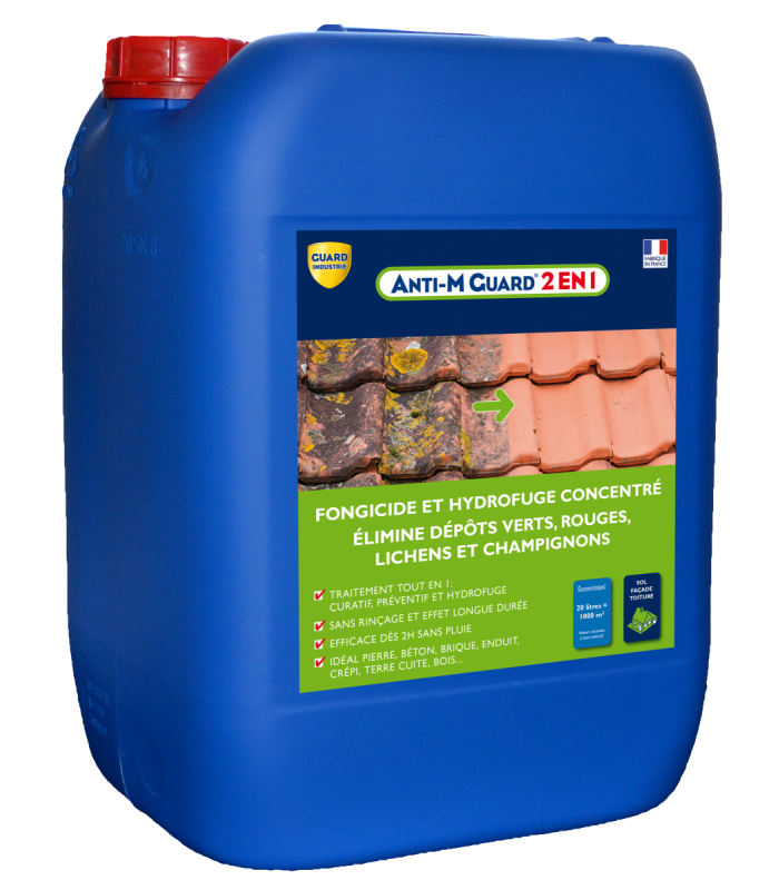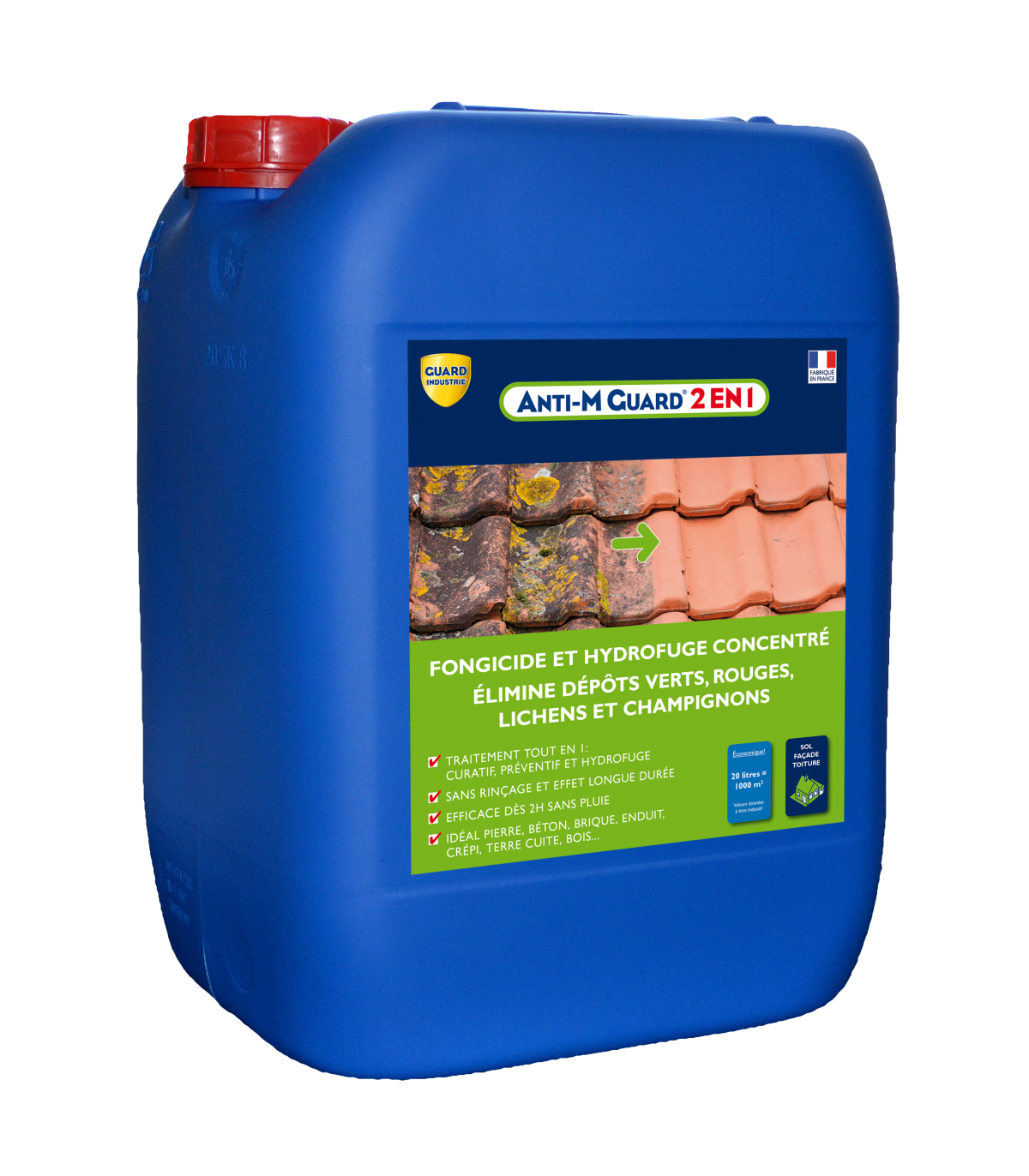 Anti M Guard 2 en 1 concentré nettoyant fongicide hydrofuge terrasses toitures façades - 5L, 20L