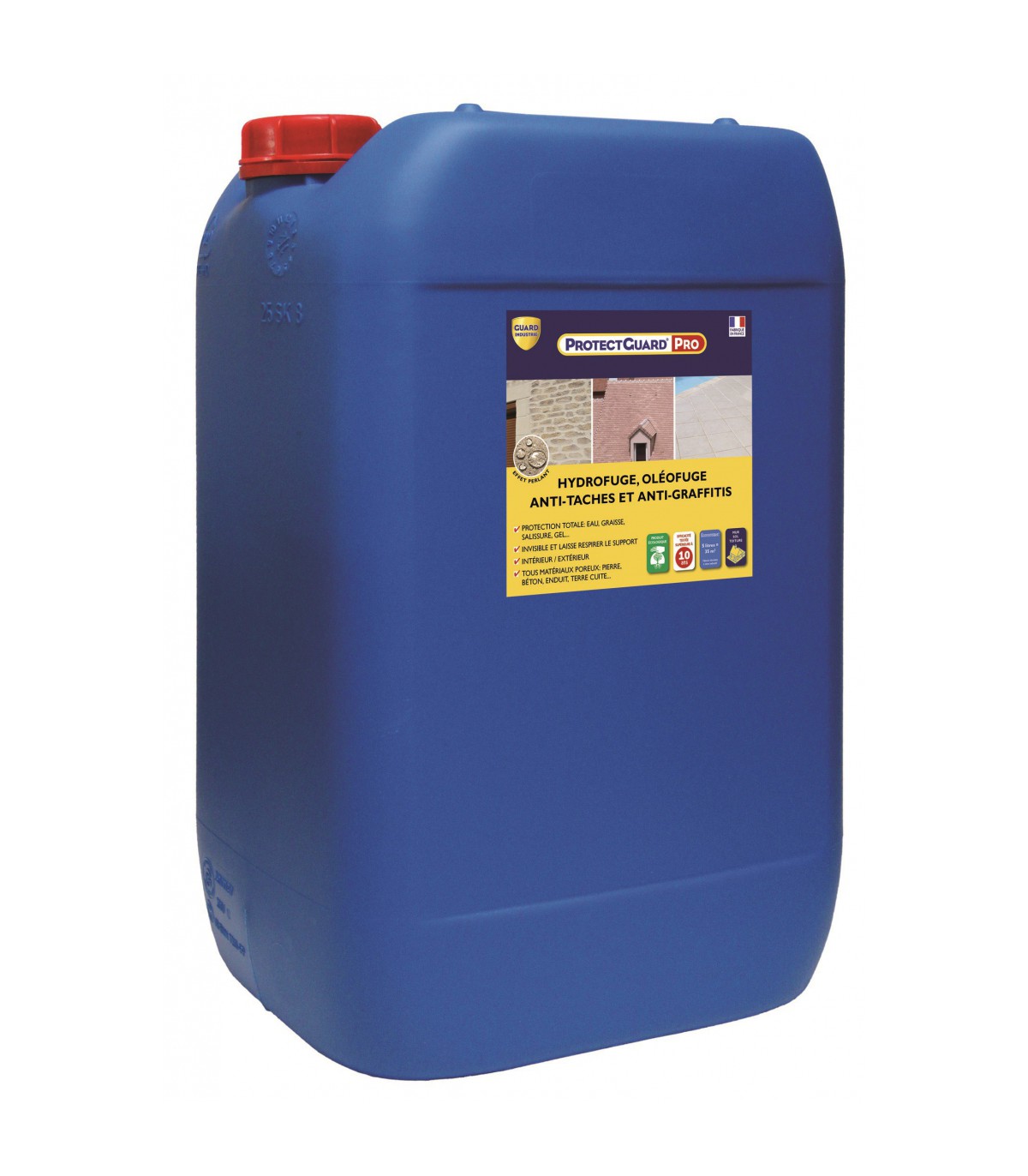 Hydrofuge, oléofuge, anti-taches et anti-graffitis ProtectGuard Pro. Ce produit assure une protection totale et durable de vos façades, de vos toitures et de vos sols extérieurs.