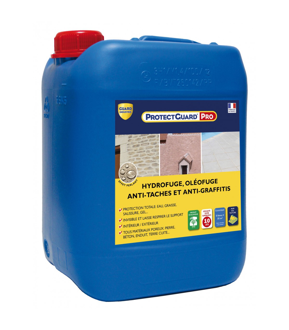 Hydrofuge, oléofuge, anti-taches et anti-graffitis ProtectGuard Pro. Ce produit assure une protection totale et durable de vos façades, de vos toitures et de vos sols extérieurs.