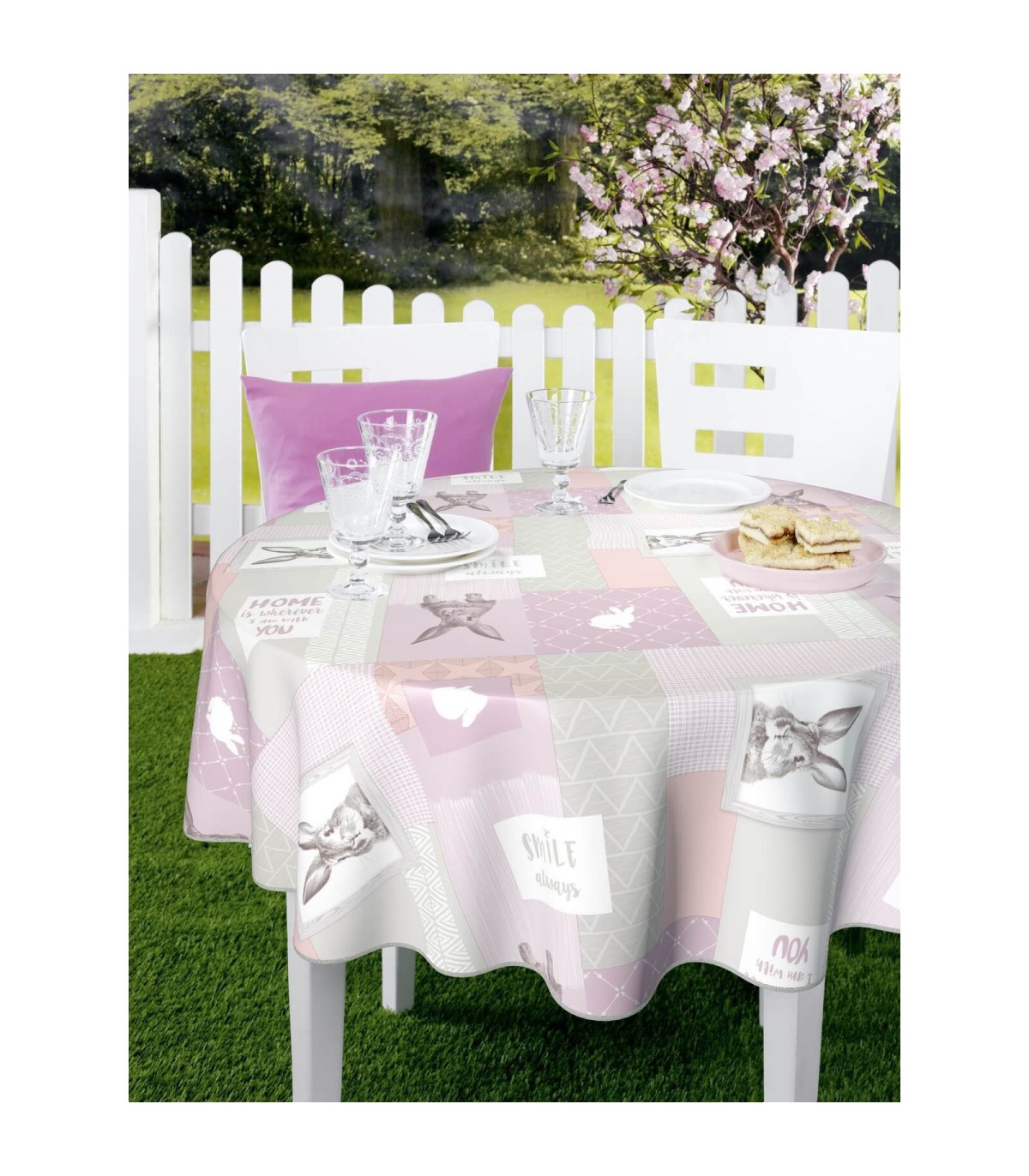 Toile cirée en PVC permettant un nettoyage facile. Cette nappe en toile cirée rectangulaire est idéale pour l'extérieur avec plusieurs coloris (rose, saumon et gris) ainsi que des motifs de lapins. Très robuste ce produit conviendra parfaitement pour une table de jardin