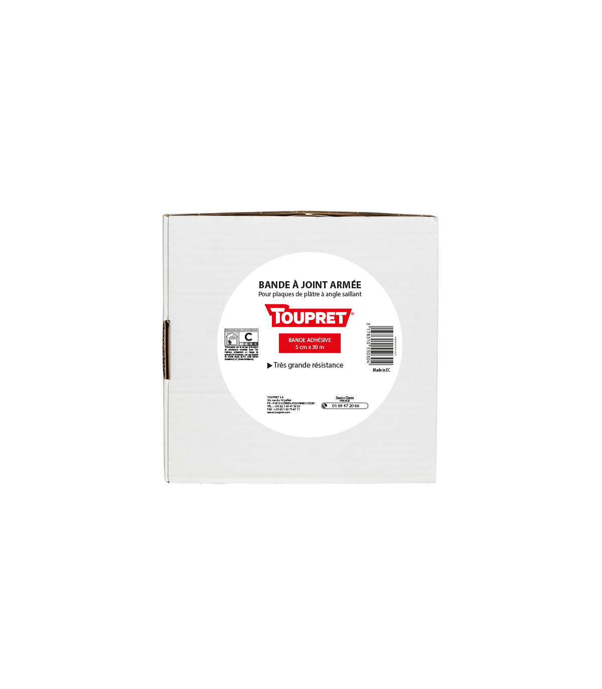 La bande à joints armée de Toupret est spécialement conçue pour le jointoiement des plaques de plâtre en intérieur. Elle est conçue pour le renforcement des angles grâce à son renfort métallique intégré. Son adhérence professionnelle permet une application durable et efficace, assurant une finition nette et résistante dans tous vos travaux de rénovation ou de construction.